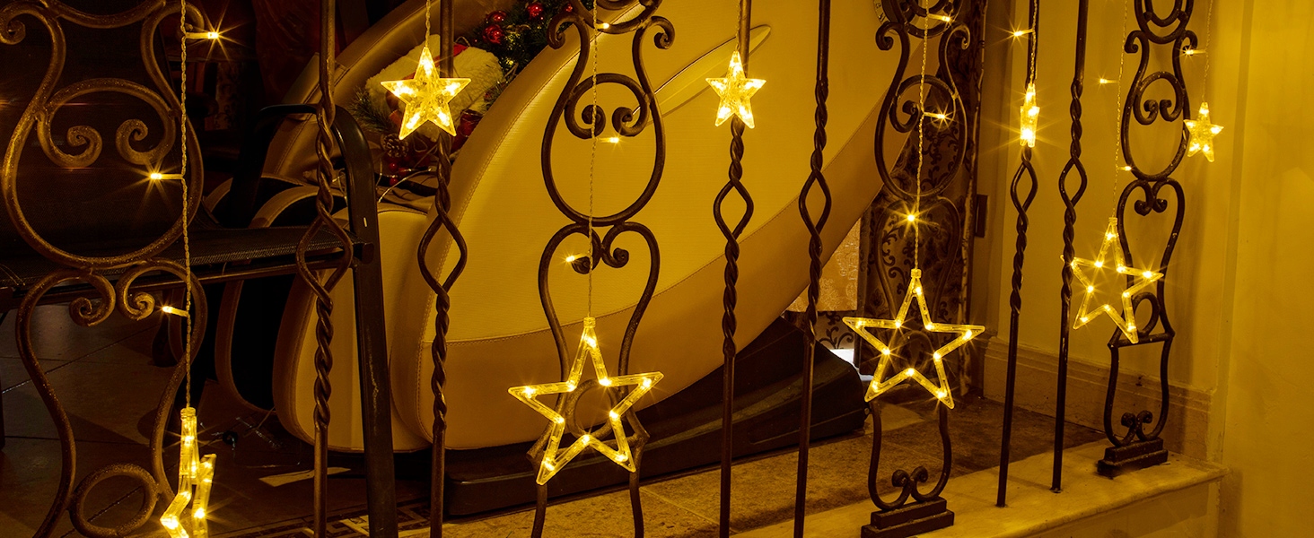 УНИКАЛЬНАЯ СТРУКТУРА: Общее количество светодиодных рождественских гирлянд — 138, в том числе 12 звезд (6 больших и 6 маленьких). Длина шнура 2,5 м, диаметр больших звезд 20 см, падение каждой из которых 90 см; Диаметр маленьких звездочек 9 см, каждая из которых падает на 60 см. Очень длинный шнур питания длиной 3 метра.