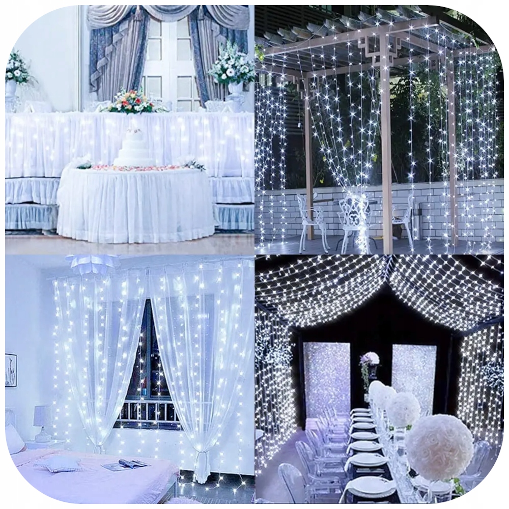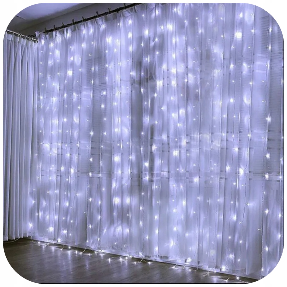 LED СВІТЛОВІ ЗАВІСИ ХОЛОДНА БІЛА ГІРЛЯНДА ПРОВОДИ ПІДВІСНІ СВІТЛІ 3х3м