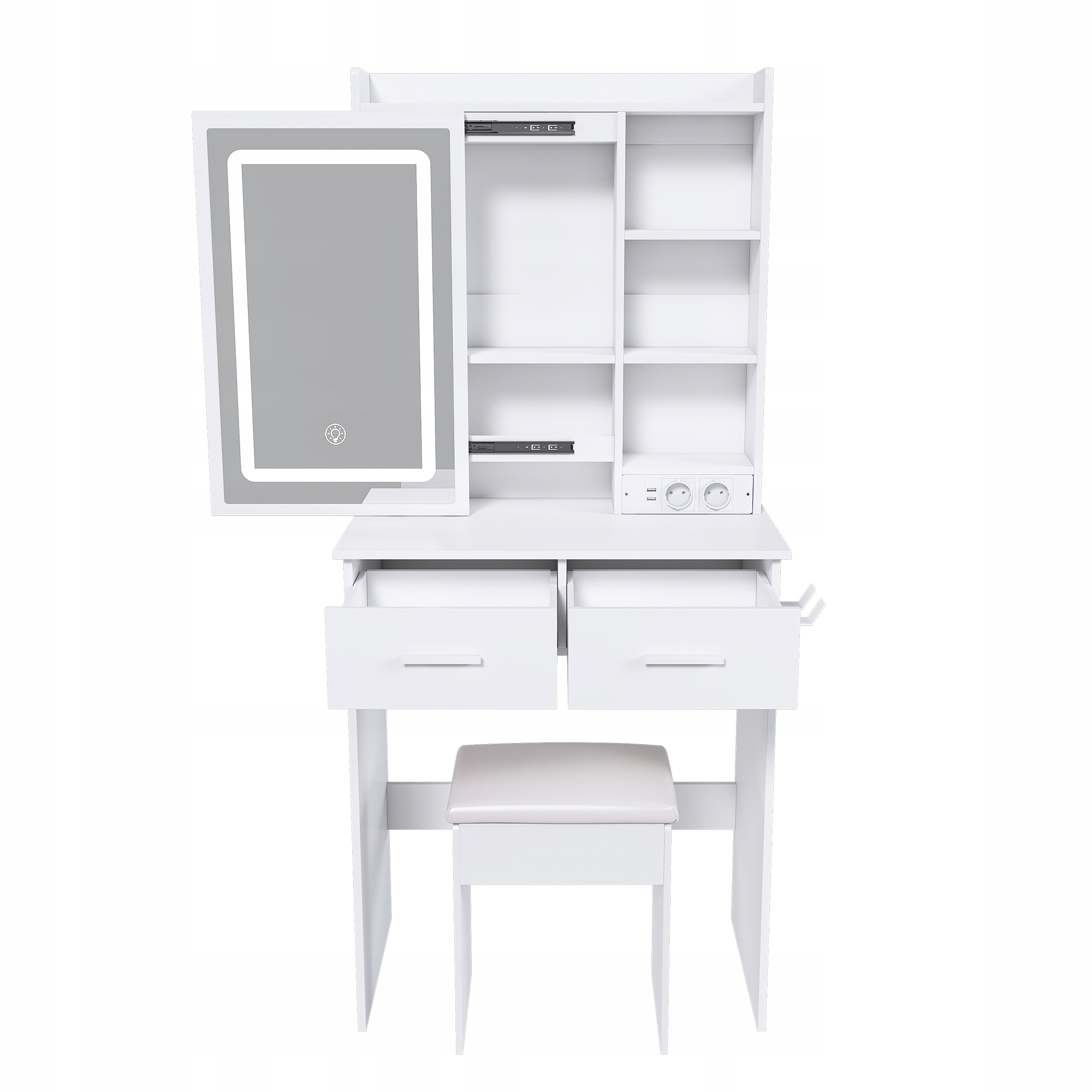 LED туалетный столик 60 см белый, регулируемое освещение, розетка, место для хранения