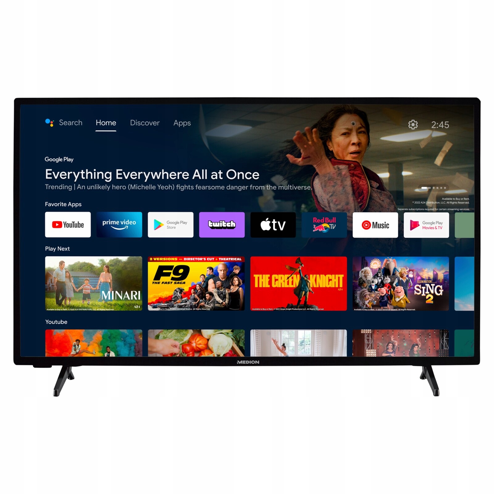 Телевизор Medion MD 30043 оснащен тройным тюнером DVB-T/T2/DVB-C/ DVB-S2, чтобы вы могли принимать не только цифровое наземное телевидение, но также цифровое кабельное и спутниковое телевидение без необходимости приобретать дополнительный декодер. Наслаждайтесь качественным изображением дома, на участке, в горах, у озера и в любом другом месте.
