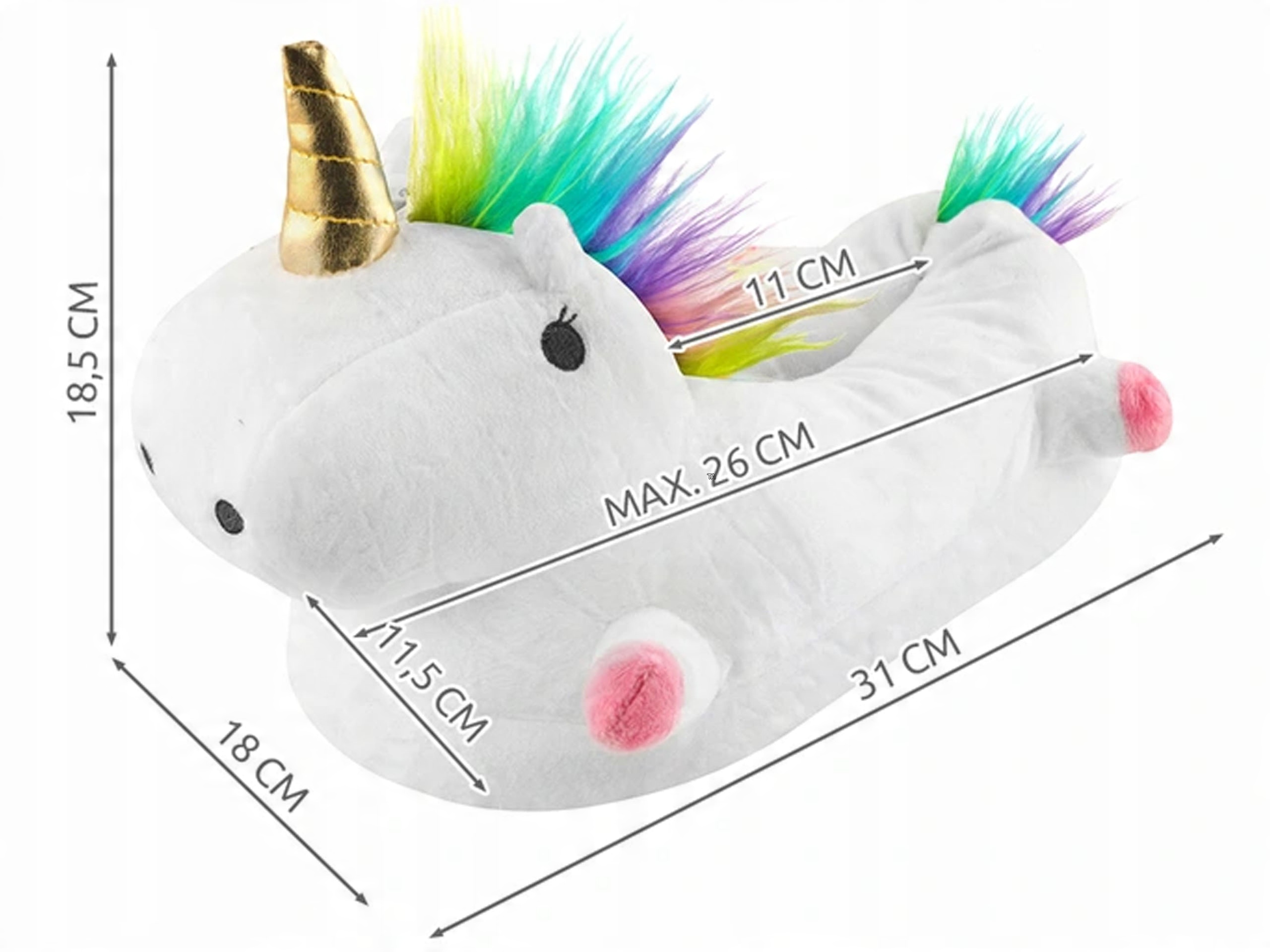 Тапочки Unicorn имеют универсальный размер, они подойдут на размер от 35 до 40, что делает их подходящими как для детей, так и для взрослых. Их можно стирать при температуре 30°C, перед стиркой отключите светодиодные кабели.