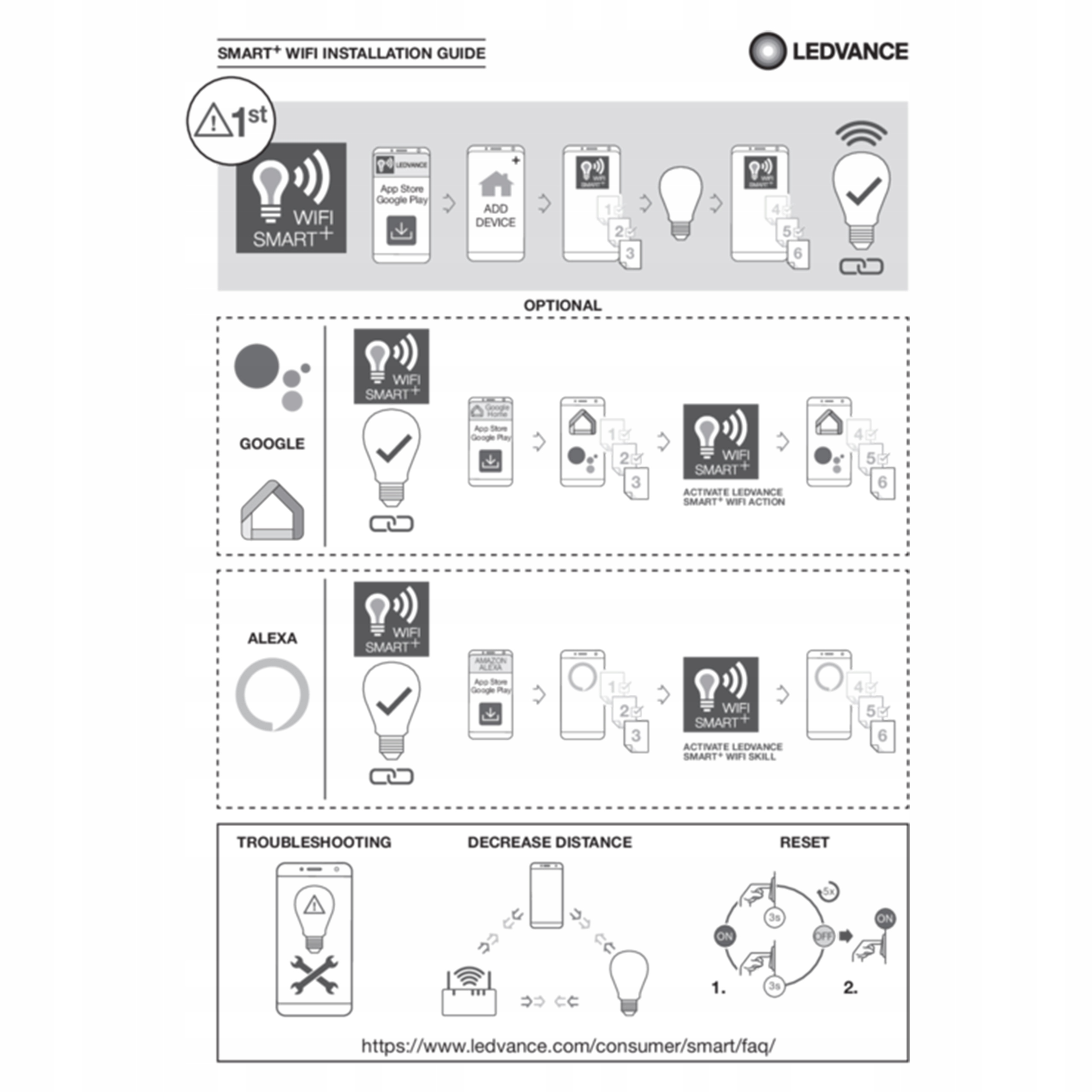 - Возможность управления через приложение LEDVANCE SMART+ WiFi (с Android™️ не ниже 4.4 или iOS 10.0).