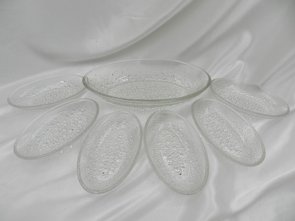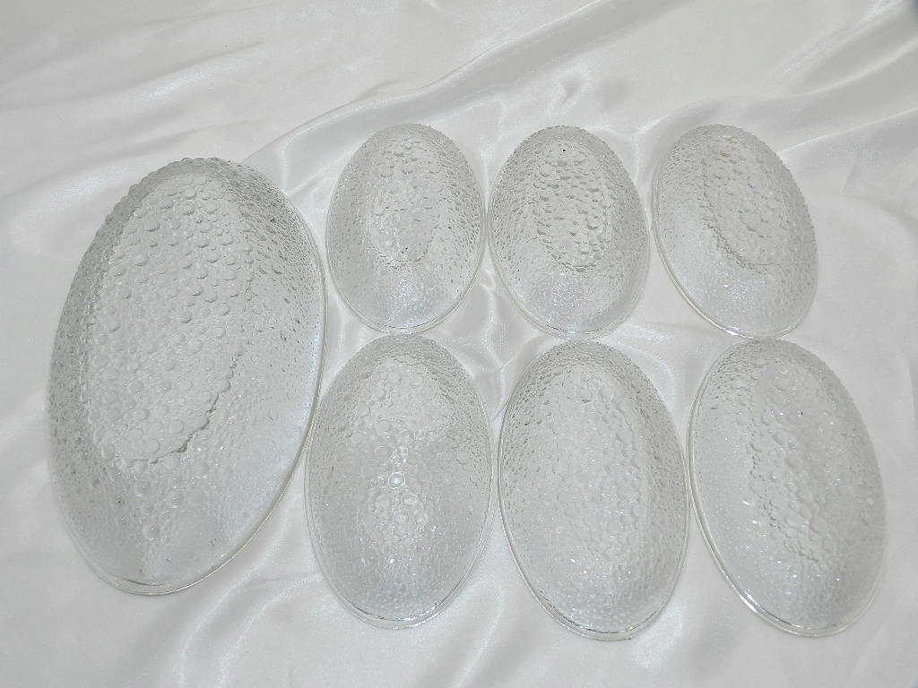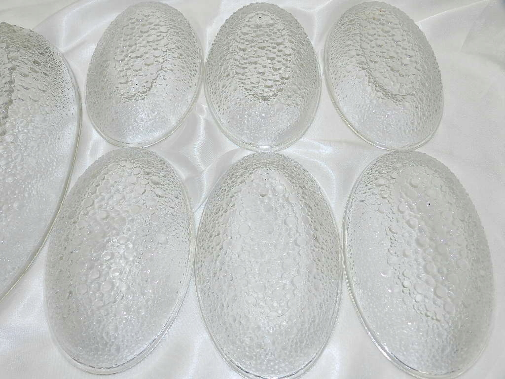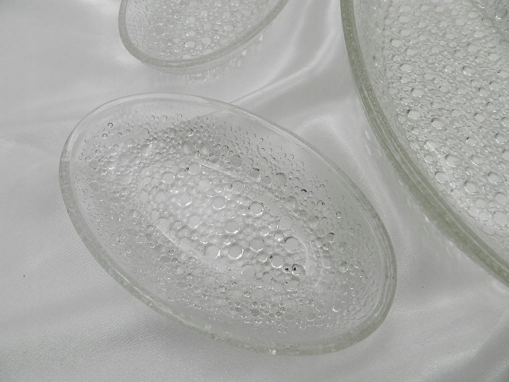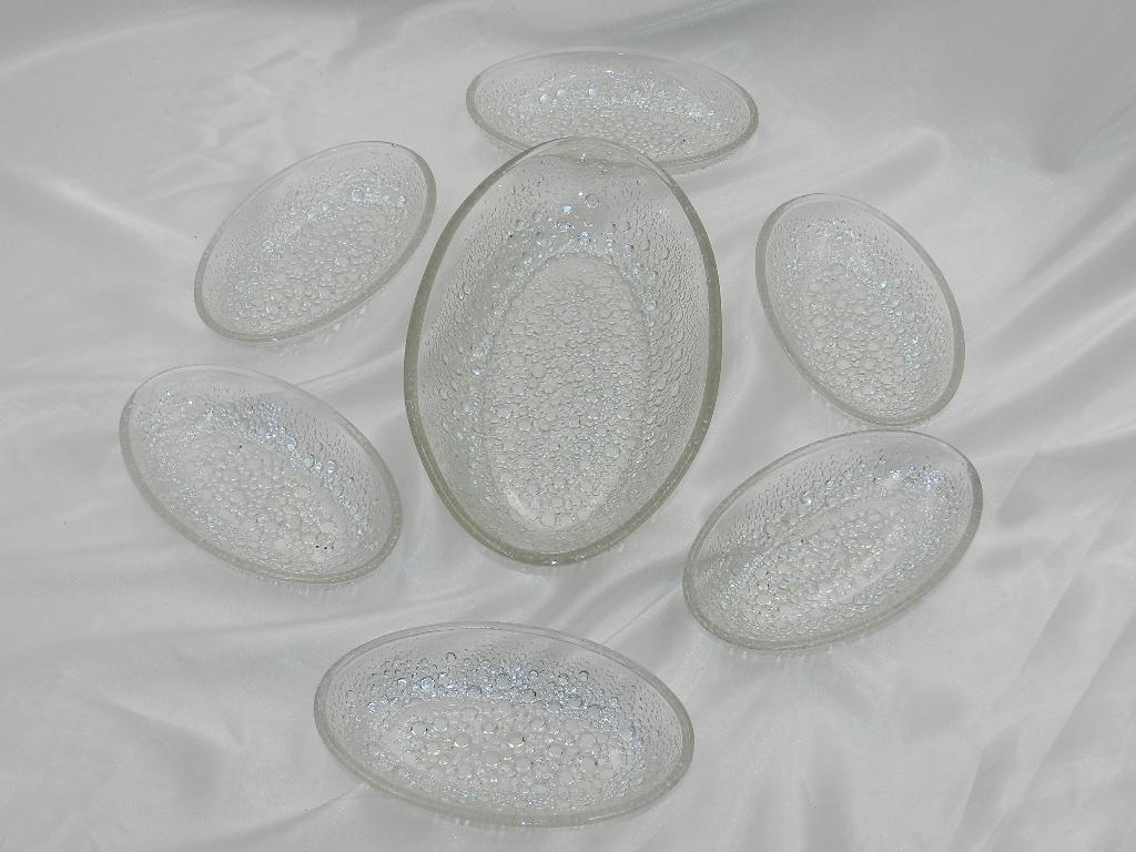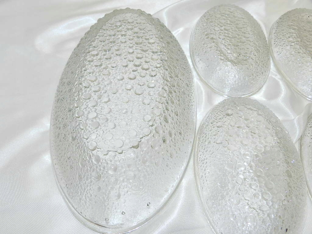 Овальные миски были изготовлены из прозрачного стекла, прижатого выпуклым рисунком снизу астероида SO.