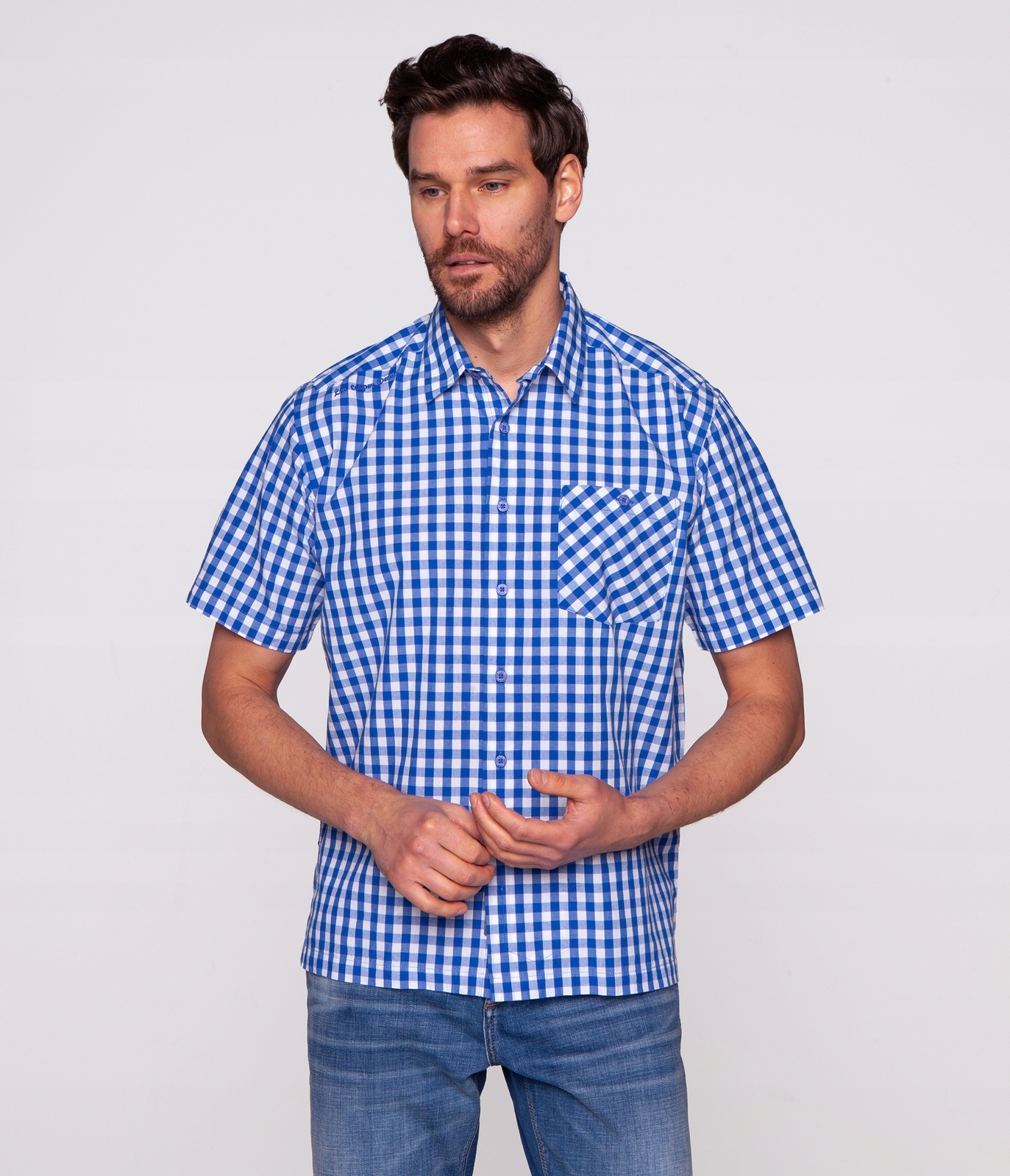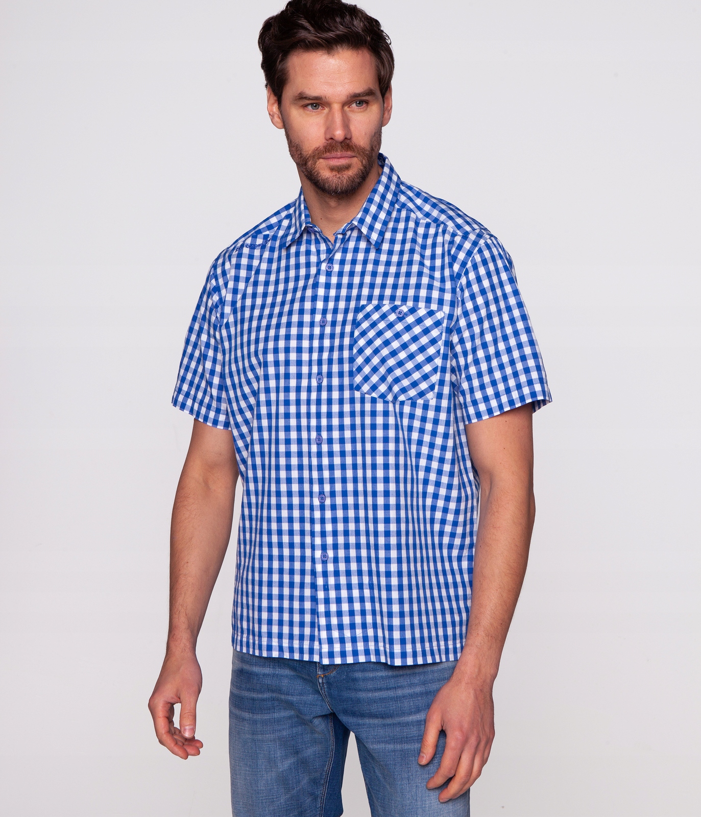 Мужская рубашка с короткими рукавами обычного кроя (REGULAR fit). Изготовлен из 100% хлопка. Классический воротник.