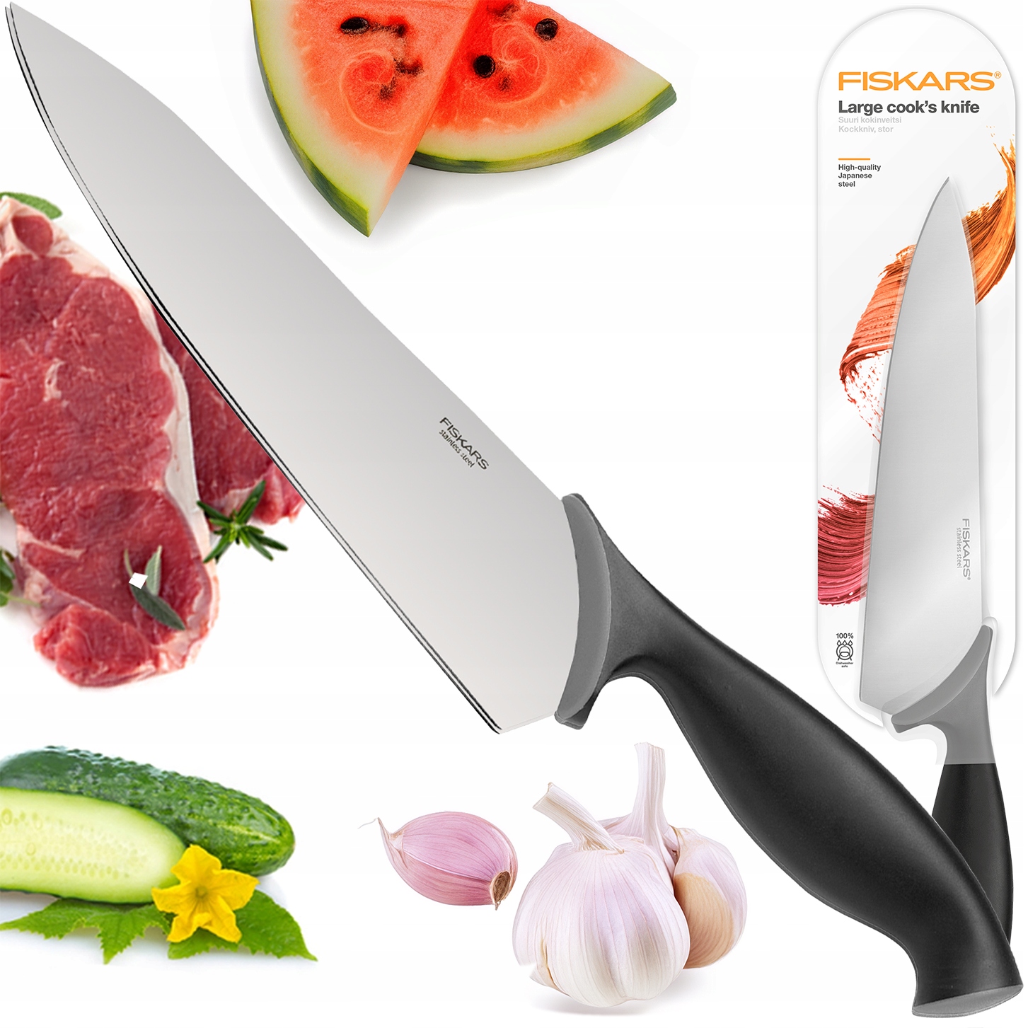 Легендарный большой поварской кухонный нож 20см Fiskars Control