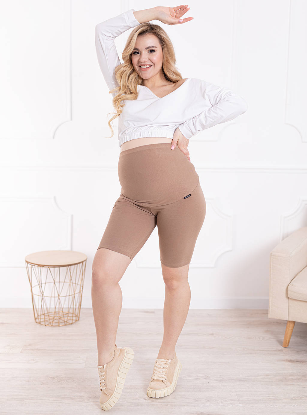 Велолеггинсы для беременныхКлассика - удобные леггинсы со вставкой для беременных. Универсальные, они являются хорошей базой для любой укладки. Они легко адаптируются к вашим новым формам и растущему животу. Мы посвящаем их всем будущим мамам, как в первом, так и во втором и третьем триместре беременности. Панель для беременных гибкая, высокая и достигает уровня живота. Отделка выполнена из нежной резины, не оказывающей давления. Короткие леггинсы для беременных изготовлены из высококачественной хлопчатобумажной ткани, безопасной как для вас, так и для вашего ребенка.