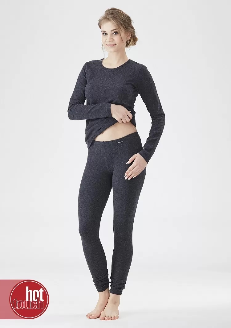 Длинные женские леггинсы из серии Hot Touch из очень теплой хлопчатобумажной ткани с начесом с обеих сторон. Благодаря примеси эластана они идеально прилегают к телу, идеальны в качестве зимнего белья для активных людей.