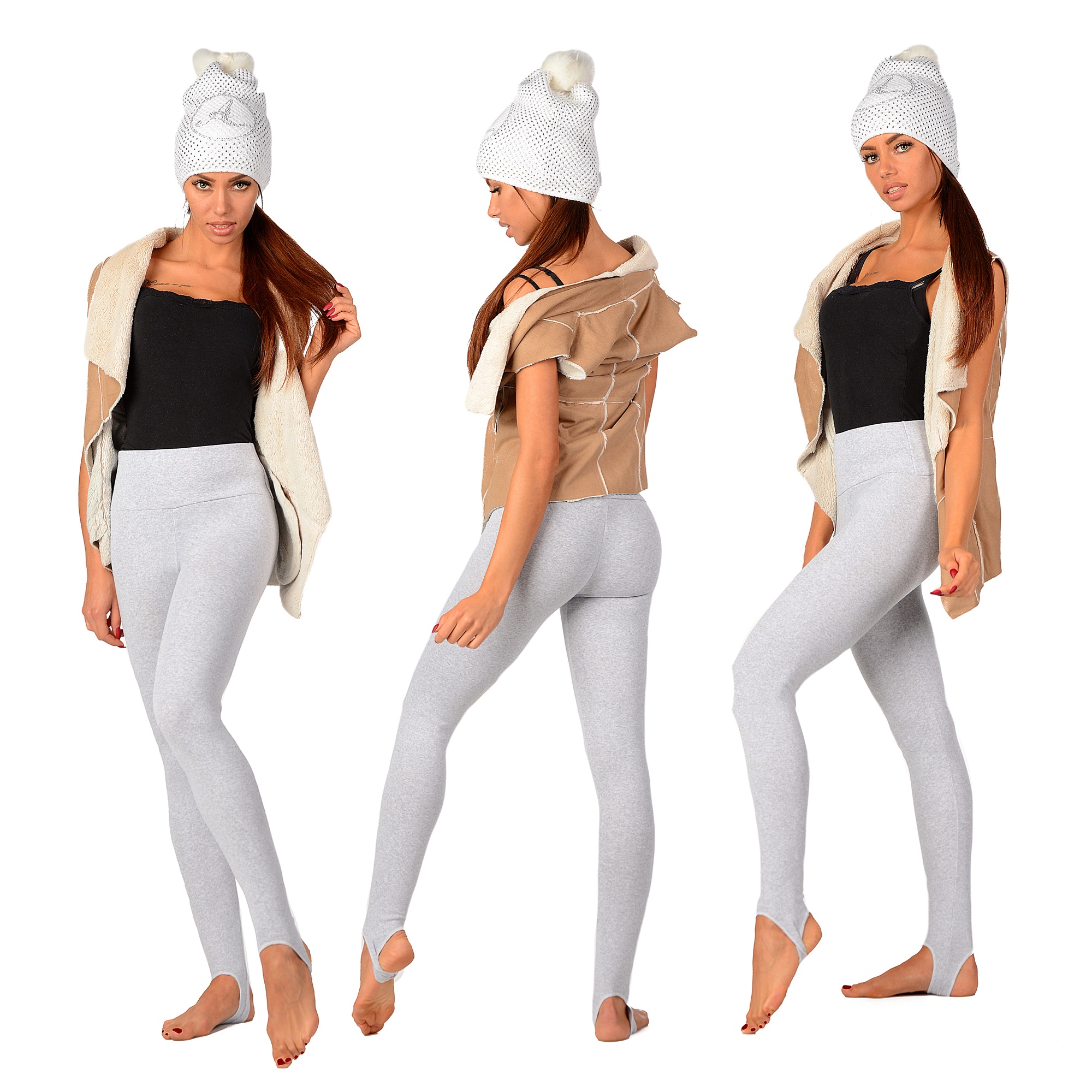 Леггинсы имеют анатомический крой, адаптирующийся к фигуре. В талию вшита резинка шириной 3 см, чтобы леггинсы не соскальзывали. Непрозрачные леггинсы, их можно носить с короткими блузками