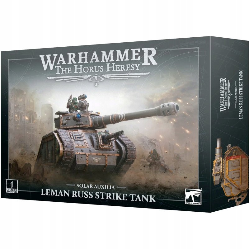 Это Из многокомпонентного пластикового комплекта можно собрать один ударный танк Solar Auxilia Leman Russ — мощный линейный танк с универсальным оснащением. В его башне размещено одно из четырех основных орудий — боевая пушка, спаренные тяжелые лазерные пушки или автопушки или длинноствольная боевая пушка «Покоритель» со спаренной автопушкой. Он также оснащен установленным на корпусе вооружением — тяжелым болтером, лазерной пушкой, автопушкой, мультилазером или тяжелым огнеметом. Башня и оба орудия имеют бесклеевую сборку, что позволяет регулировать их положение в середине игры.