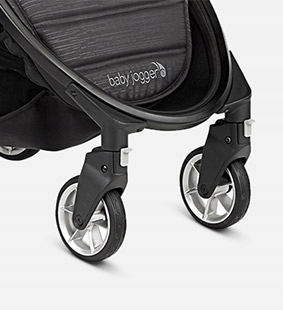 Подрессоренные передние колеса диаметром 13 см идеально подходят для извилин городских джунглей. Возможность зафиксировать автомобиль в положении прямолинейного движения очень удобна во время длительных и спокойных прогулок.