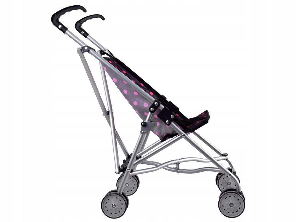 Складная кукольная коляска модного черного цвета в розовый горошек подойдет к любому стилю. Легкая и устойчивая коляска – идеальное решение!