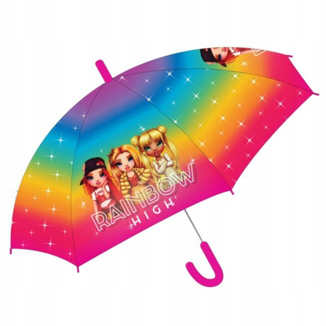 Зонт с ручным управлением с мотивом RAINBOW HIGH. Он обеспечит отличную защиту вашего ребенка как от дождя, так и от солнца. Простой и удобный в использовании.