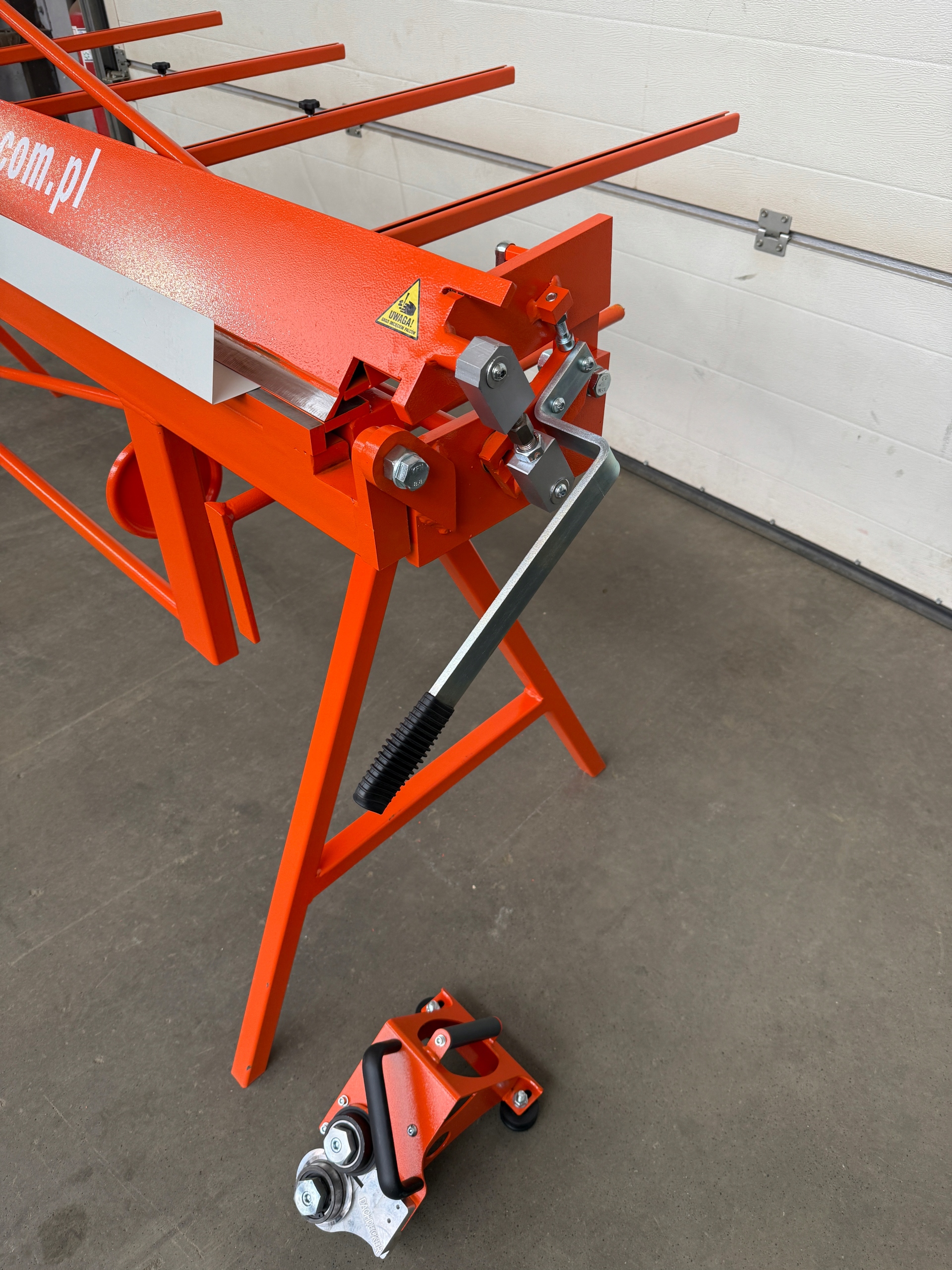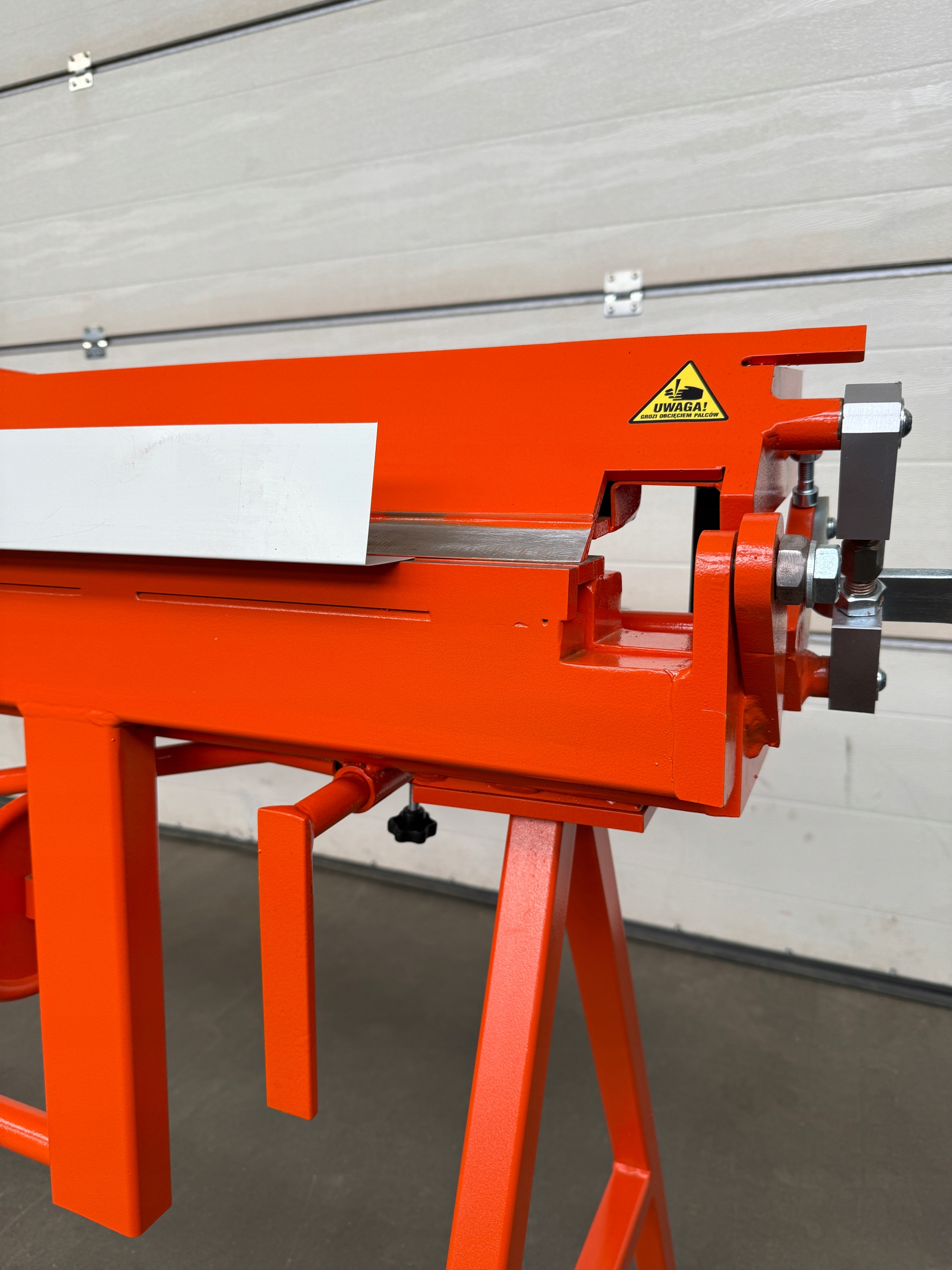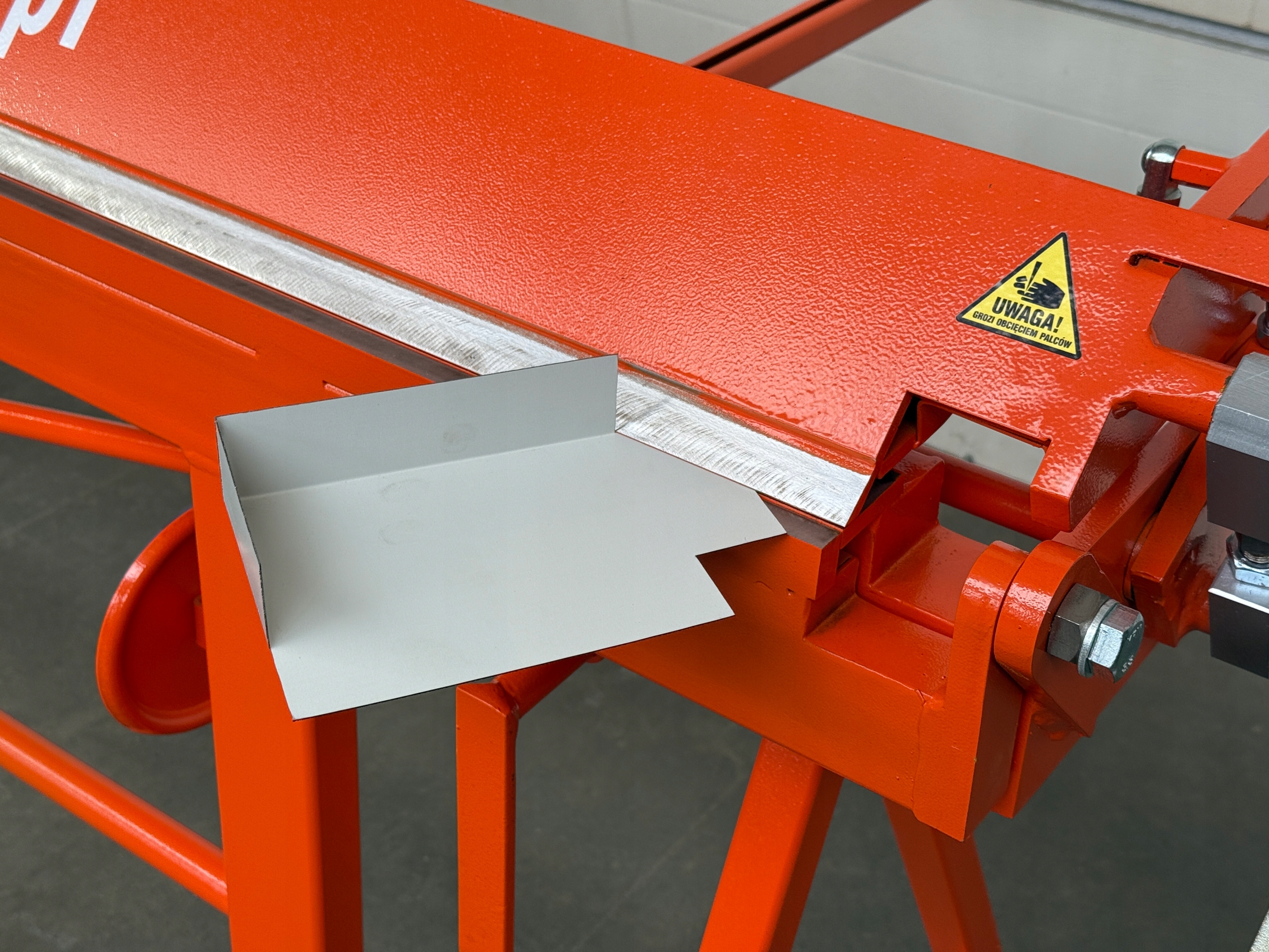 - Задняя стола, оснащенная сопротивлением (1000 мм) - позволяет размещать листовой металл и свободное движение. Это может быть использовано в качестве места, чтобы положить листы. Оборудован по шкале, который позволяет точно устанавливать изогнутый и разрезанный листовой металл.