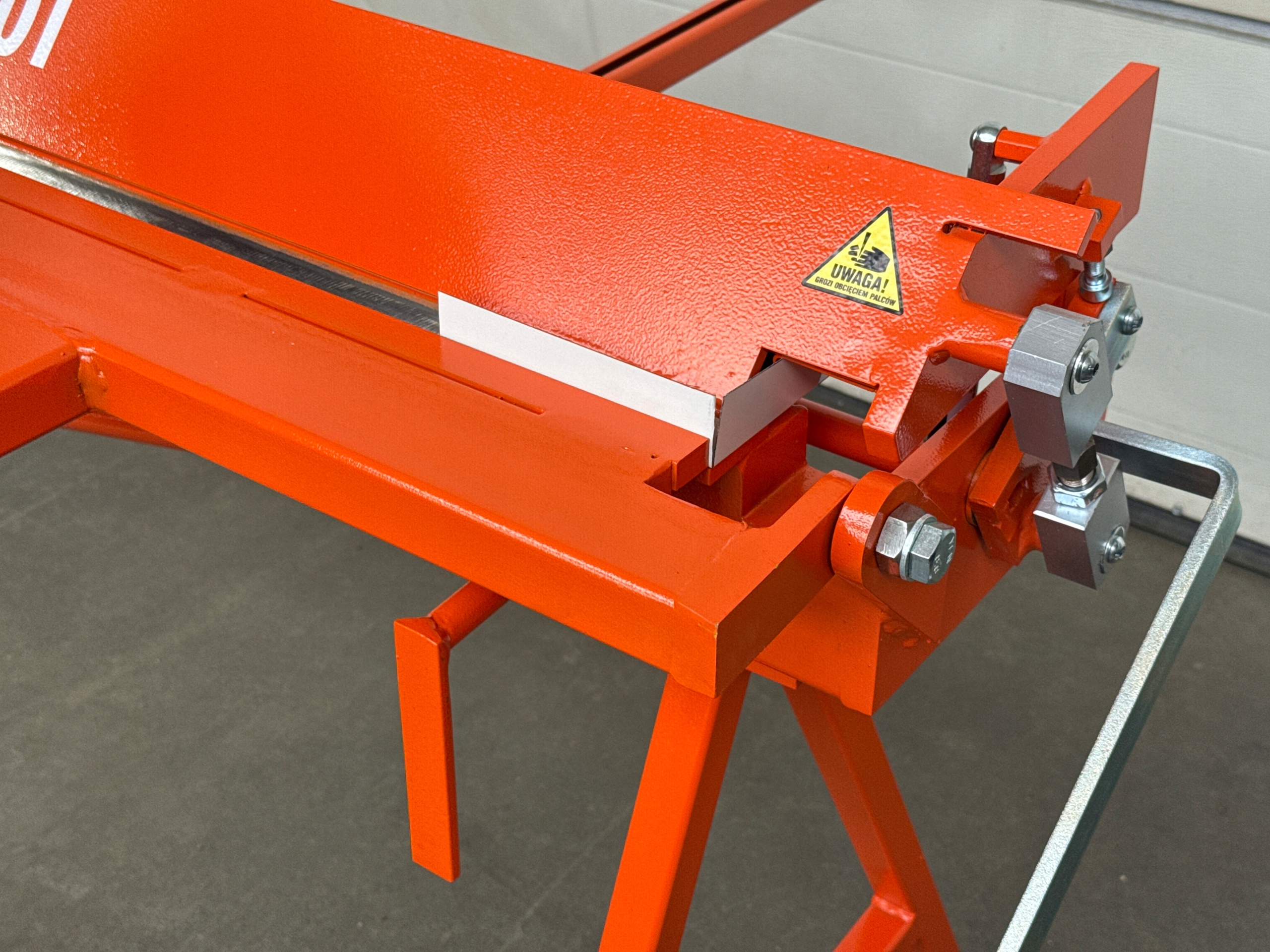 - Переднее сопротивление - позволяет установить ширину резки с передней части отказа. Конструкция сопротивления позволяет им исполнить 180 °, а их возвращение в то же место. Очень полезен для режущего металла. Передние ограничители используются в повторяющихся работах. Они сохраняют ту же длину разрезаного листового металла много раз. Быстрое и тщательное измерение разрезанного листового металла можно получить с помощью установленного измерения измерения. Склонился от 4 страниц вниз и вверх.
