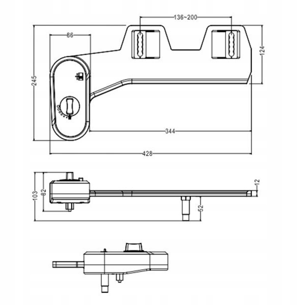 - Дополнительный биде может быть дополнительно установлен под туалетной платой, подходит для большинства типов туалетов. Расстояние монтажа составляет 136 - 200 мм.