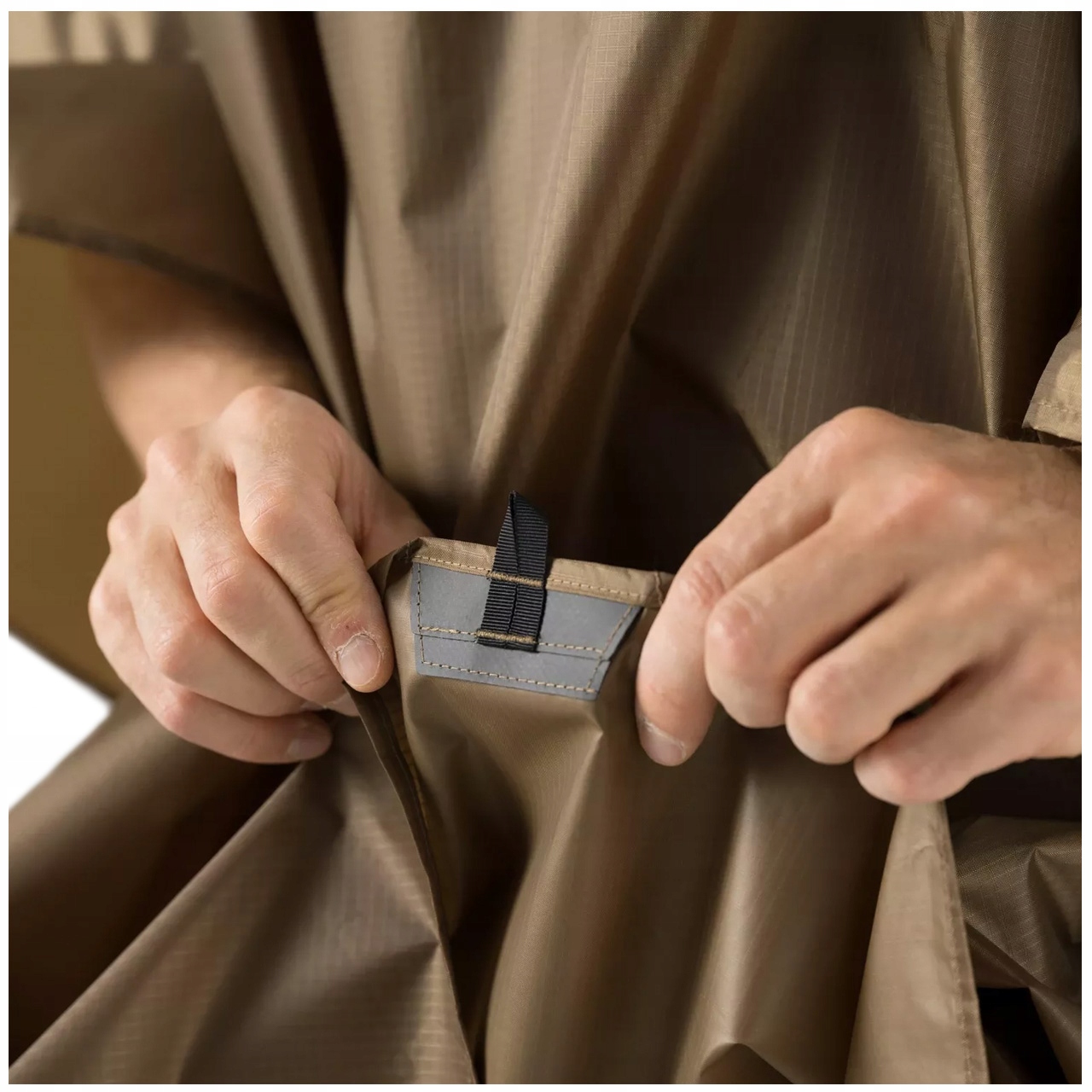 Легкое пончо — это улучшенная, уменьшенная версия классической американской модели. Пончо- создано для пользователей, которым нужна надежная, но легкая защита от дождя. Пончо, изготовленное из прочного полиэстера Ripstop, можно использовать как накидку или как импровизированное укрытие. Уменьшенные элементы конструкции уменьшают вес и облегчают упаковку, сохраняя при этом полную функциональность в полевых условиях.