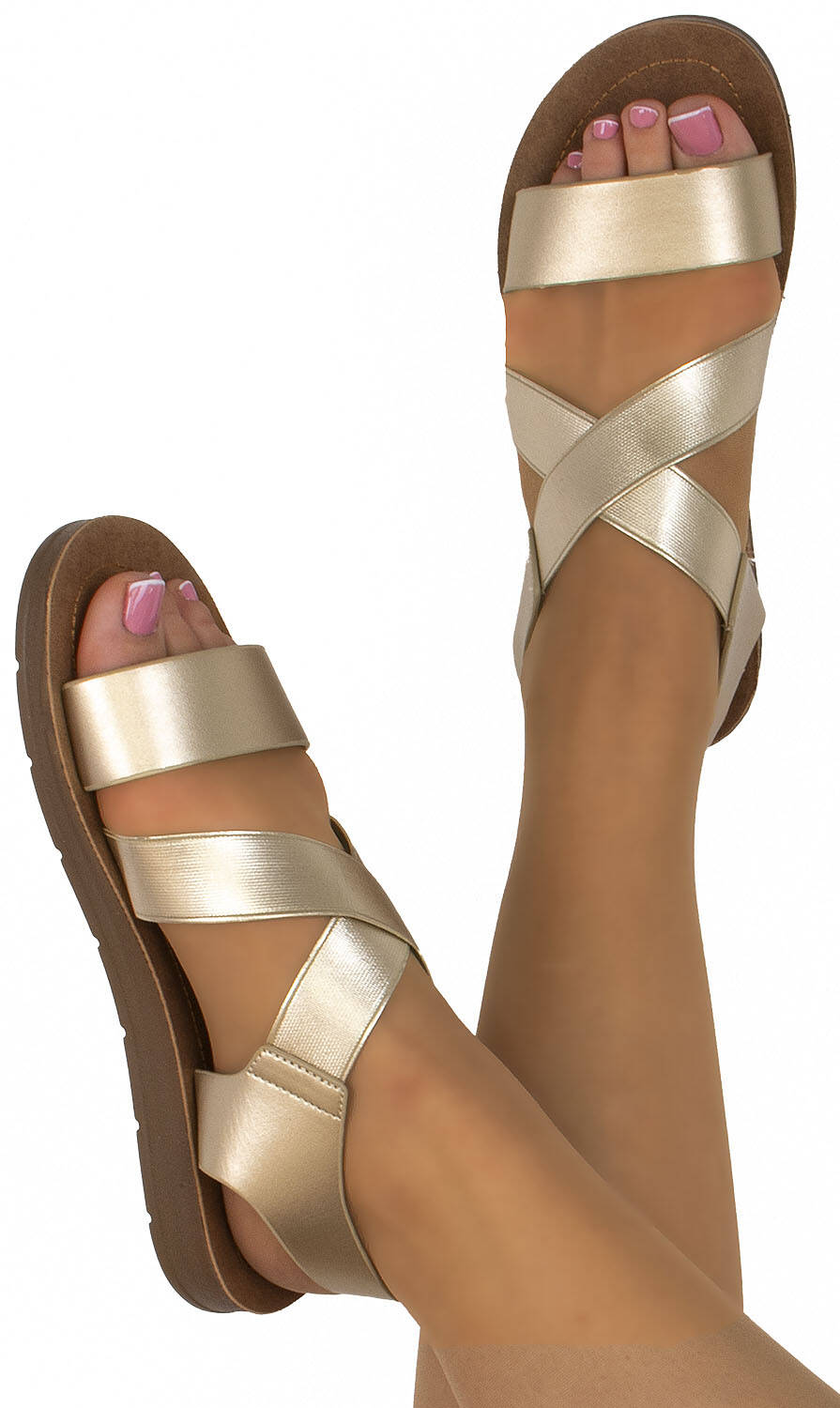 ЛЕГКІ БОСОНІЖКИ З ЕЛАСТИЧНИМИ РЕМІНКАМИ, ЗОЛОТО 38