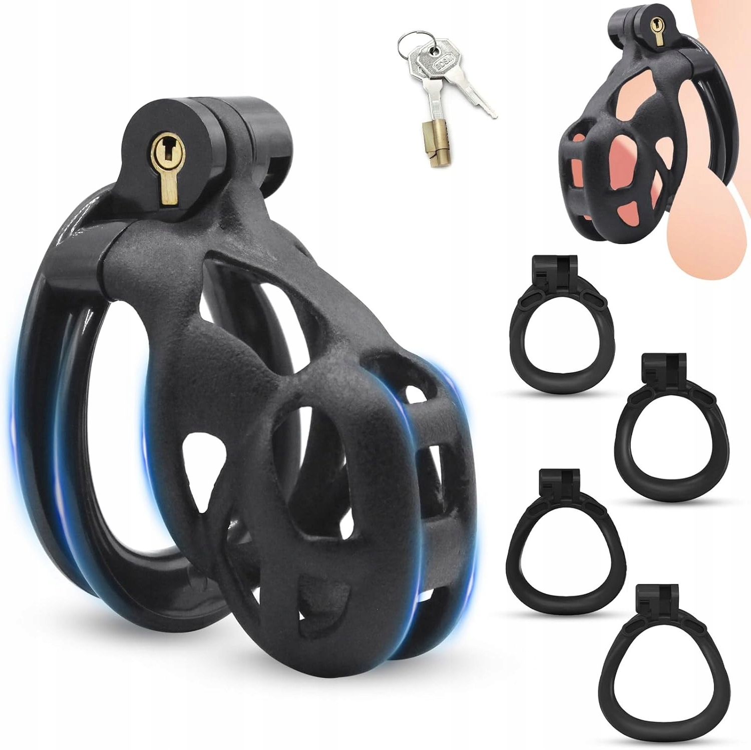 ЛЕГКИЙ ЧЕРНЫЙ ПОЯС Целомудрия КЛЕТКА ПЕНИСА ЦЕЛОСТНОСТИ С 4 КОЛЬЦАМИ