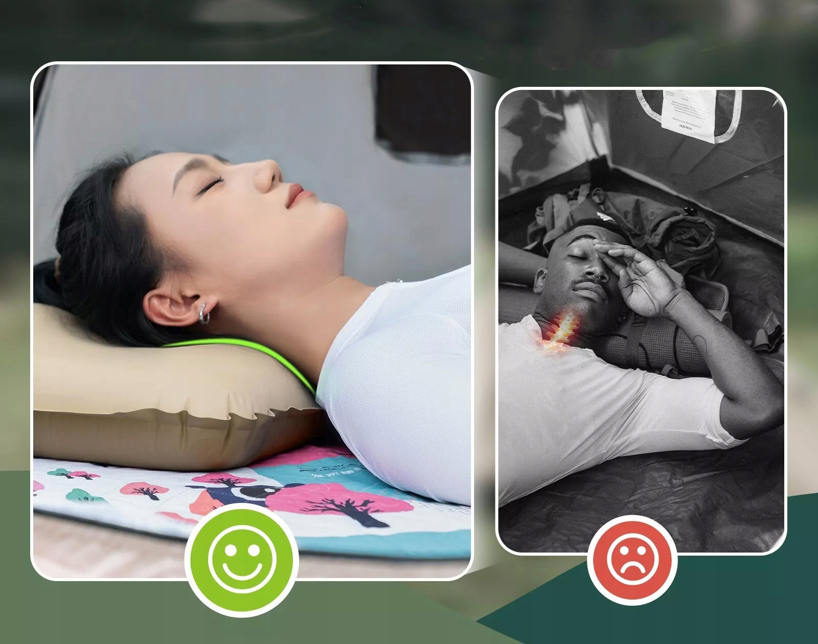 Регулируемая поддержка шеи: Qunature Внешняя подушка для кемпинга является оптимальной 10 см, обеспечивая стабильную и удобную поддержку шеи. Наслаждайтесь непрерывным качеством сна без ударов и деформации подушки.