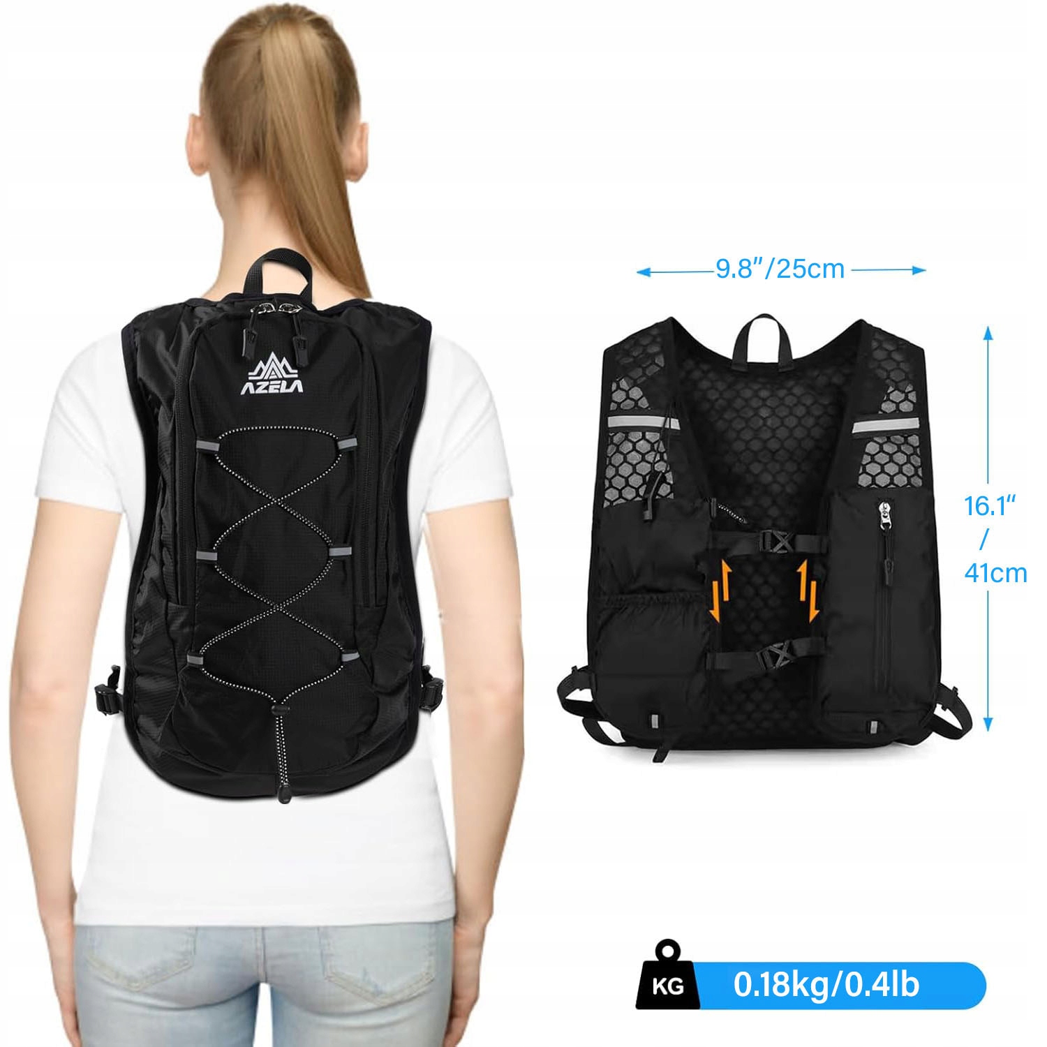 Этот рюкзак легкий и воздушный. Мягкая, дышащая сетка из полиэстера принимает форму вашего тела, обеспечивая циркуляцию воздуха и сохраняя прохладу во время бега. Нагрудные и набедренные ремни регулируются в зависимости от размера груди, будь то подростки, мужчины или женщины. Нагрудные и набедренные ремни предотвращают раскачивание рюкзака во время тренировки.