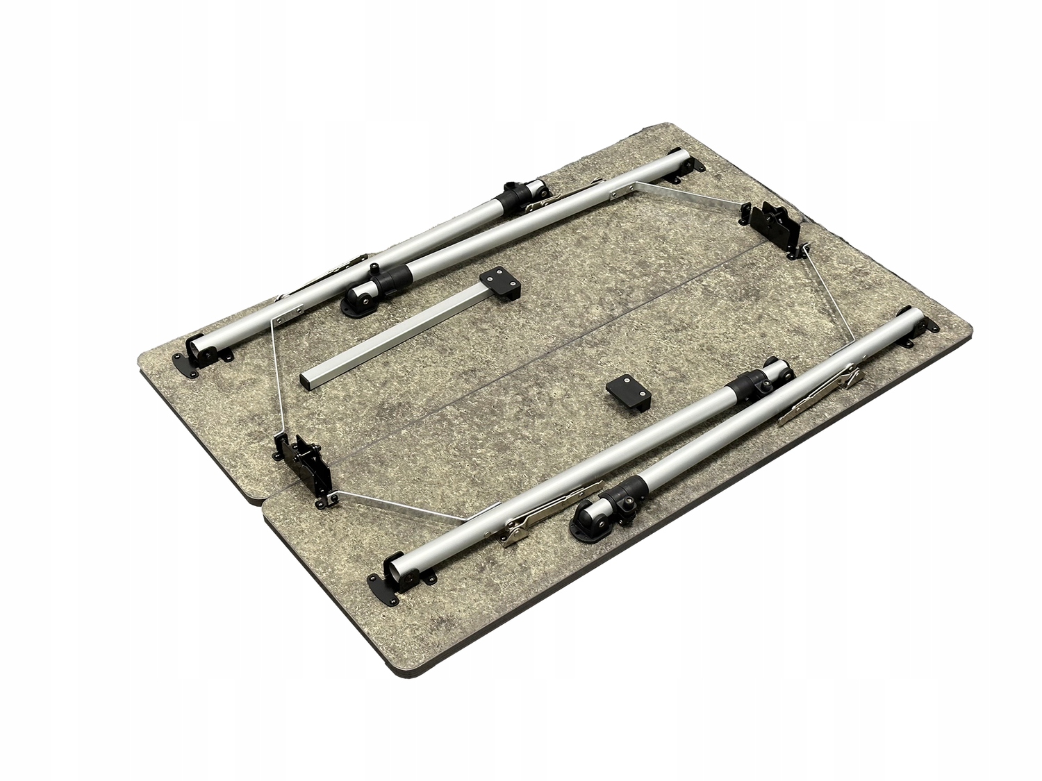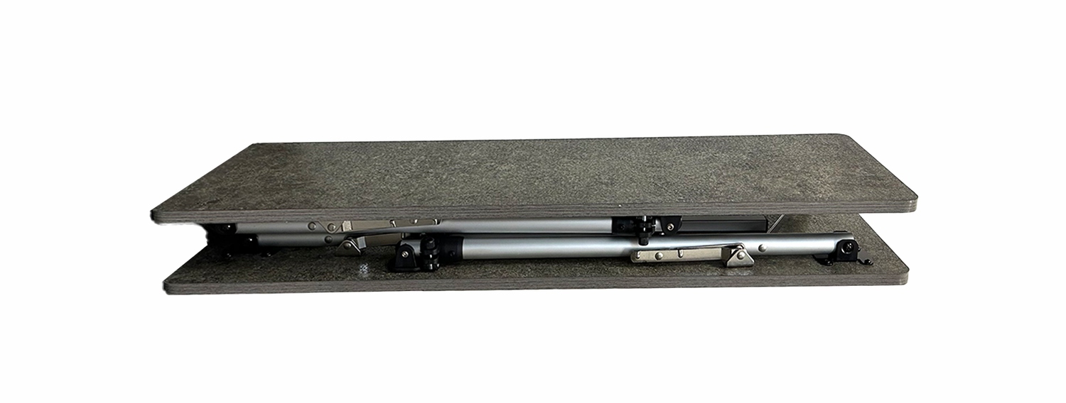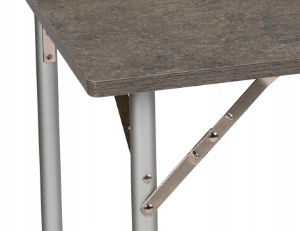 Очень легкий складной стол среднего размера. Оснащен легкой алюминиевой рамой и столешницей под бетон.