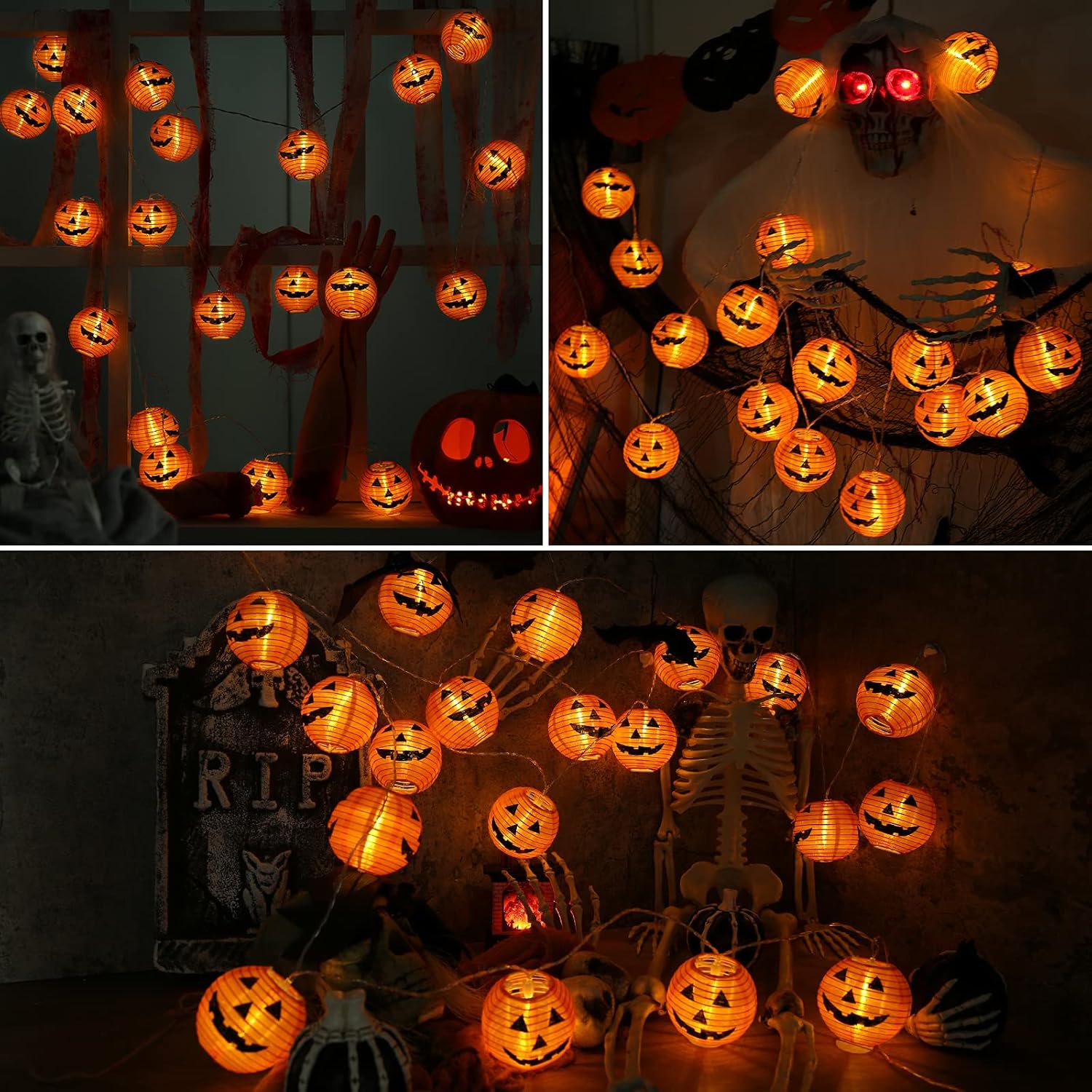 🎃 Страшное украшение Хэллоуина: Оранжевые тыквенные фонари для Хэллоуина также выглядят декоративными в течение дня. После подсветки они создают таинственную, удивительную и интенсивную атмосферу для Хэллоуина, уникальный и реалистичный дизайн тыквы создает ужасную атмосферу Хэллоуина. Спальня, на окне, гостиной, стене, дворе, сада, крыльца, забора и т. Д.