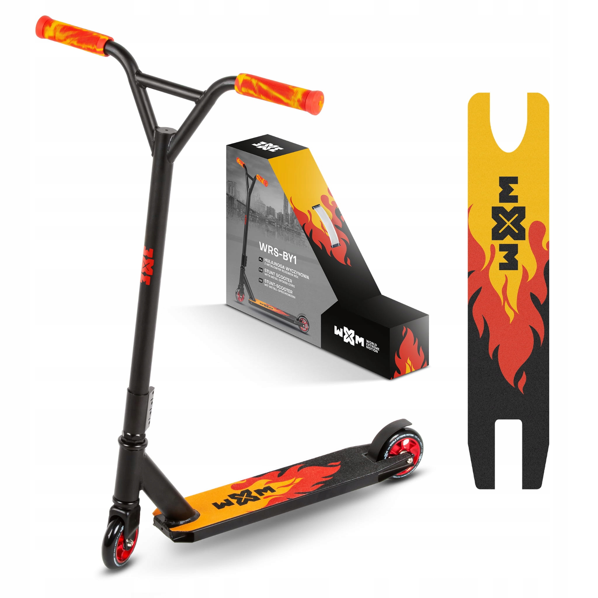 Трюковый самокат WXM WRS — легкий, быстрый и маневренный трюковый самокат для продвинутых акробатических исполнителей. Конструкция: легкая и прочная алюминиевая конструкция (соответствует стандарту EN 14619). У автомобиля усиленные винты.