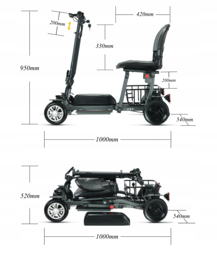 Freejoyer F7 имеет компактную функцию 100 x 54 x 95 см и после складывания всего 100 x 54 x 40 см. Благодаря 24,5 кг и функции, его легко переносить и переносить, подходящее в качестве электромагнитной машины для пожилых людей.
