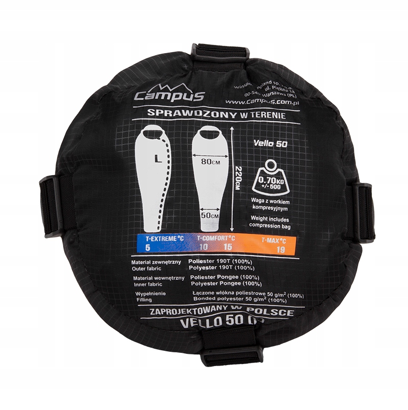 Высококачественный спальный мешок VELLO 50 от Campus< /б >. Данная модель представляет собой классический образец спальника-мумии. Он отличается превосходным качеством изготовления и инновационным дизайном. Трехслойная конструкция обеспечивает комфортный сон при температуре от +10 до +15°С. Благодаря небольшим размерам и небольшому весу (0,68 кг) спальник предназначен для любителей велосипедных и пеших прогулок (занимает мало места в багаже) и может успешно использоваться как в походах, так и в туристических походах. Спальник имеет возможность соединения.