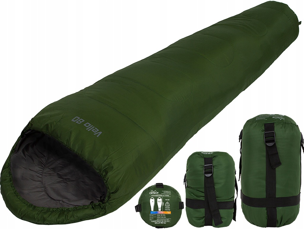 Высококачественный спальный мешок VELLO 80 от Campus. Данная модель представляет собой классический образец спальника-мумии. Он отличается превосходным качеством изготовления и инновационным дизайном. Трехслойная конструкция обеспечивает комфортный сон при температуре от +7 до +12°С. Благодаря небольшим размерам и небольшому весу (0,74 кг) спальник предназначен для любителей велосипедных и пеших прогулок (занимает мало места в багаже) и может успешно использоваться как во время кемпинга, так и в туристических походах. Спальник имеет возможность соединения.