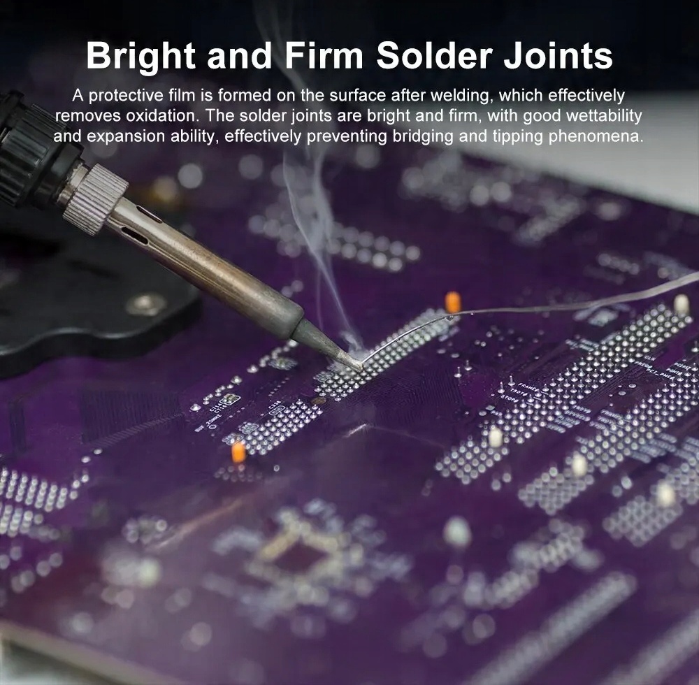 Предлагаемая олово имеет именно такой тип флюса, который очень практичен, поскольку не требует использования дополнительных вспомогательных средств для пайки.
