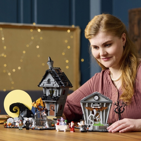 • Связь с диорамой для взрослых - постройте три знаковых местах из фильма «Городской Хэллоуин» Тима Бертона и создайте красивое рождественское украшение для дома благодаря этому коллекционеру LEGO® MEDIA SET