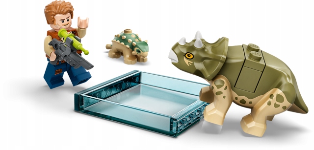 • В комплект входят две минифигурки Оуэна Грейди и доктора Генри Ву, а также новые фигурки детенышей трицератопса и анкилозавра (июнь 2020 года), так что дети смогут играть за блестящих ученых и ловить сбежавших динозавров.
