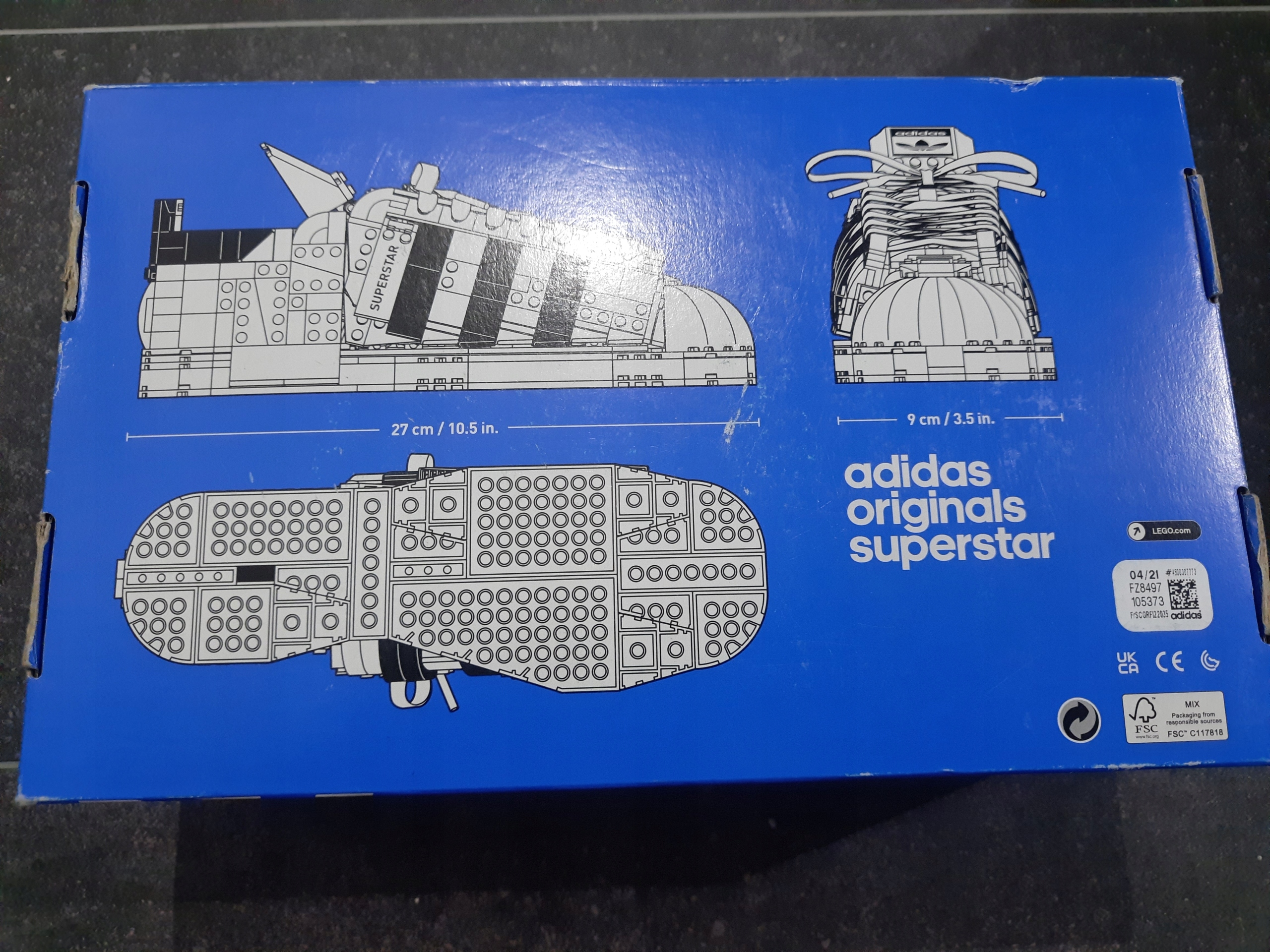 - С набор Lego® Adidas Originals Superstar 10282, который вы построите и установите одну из самых популярных кроссовок в мире на полке.