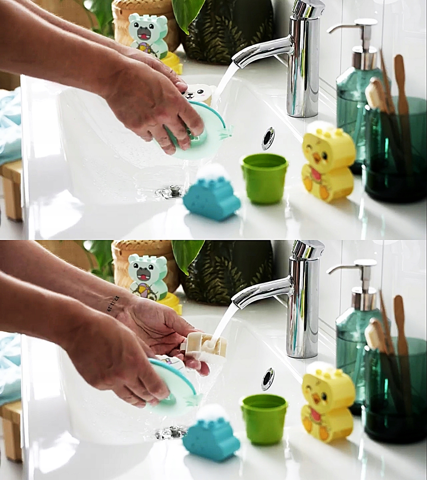 В комплект входит ведро для мытья животных и дождевое облако. Кольца можно открыть для легкой чистки. Благодаря этому эта универсальная развивающая игрушка всегда будет чистой, гигиеничной и готовой к следующему ванне.