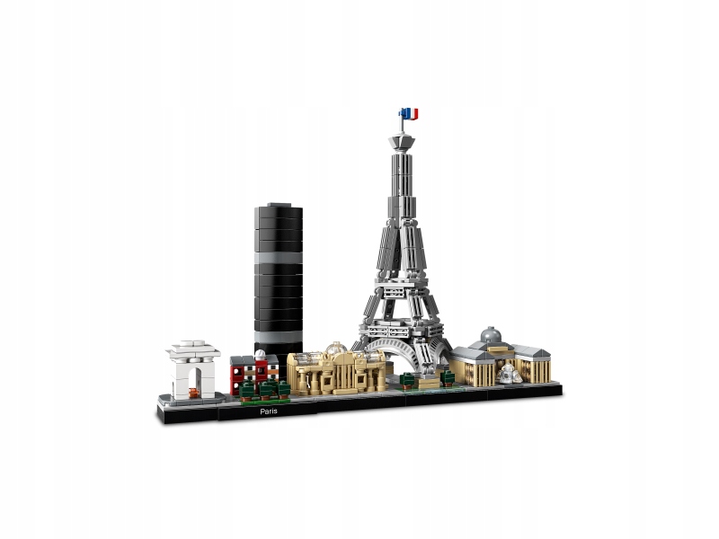 Постройте панораму с самыми известными достопримечательностями Парижа. Набор Skyline Architecture Lego® 21044 показывает триумфальную арку, Elysees, Montparnasse Tower, Hala Grand Palais, Eiffel Tower и Louvre. Целое дополняется областями, покрытыми травой и деревьями, и декоративной табличкой с надписью «Париж». Набор великолепен как элемент домашнего или офисного декора, а представление - это расслабляющая задача, которая обеспечит большое удовлетворение каждой архитектуре, путешествиях, истории и дизайне. Взаимные пропорции здания из каждой панорамы соответствуют реальности, а также их цвета.