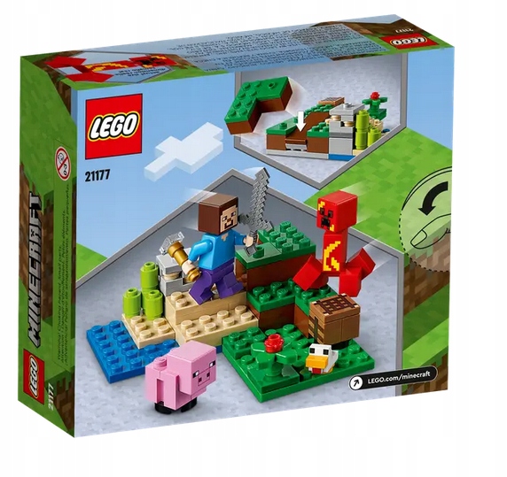 Этот набор Minecraft включает в себя множество аттракционов для детей. Один из персонажей игры, Стив, проводит время со свиньей и цыпленком, как вдруг появляется взрывающийся Крипер! Но сначала дети могут построить что-нибудь творческое из железных кубиков на столе для рукоделия, позаботиться о животных и вырастить сахарный тростник или украсить модель маками. Тогда они смогут взять меч и сразиться с ужасающим взрывающимся Крипером. Бой завершится, когда вы нажмете на детонационный блок: Крипер взлетит в воздух!
