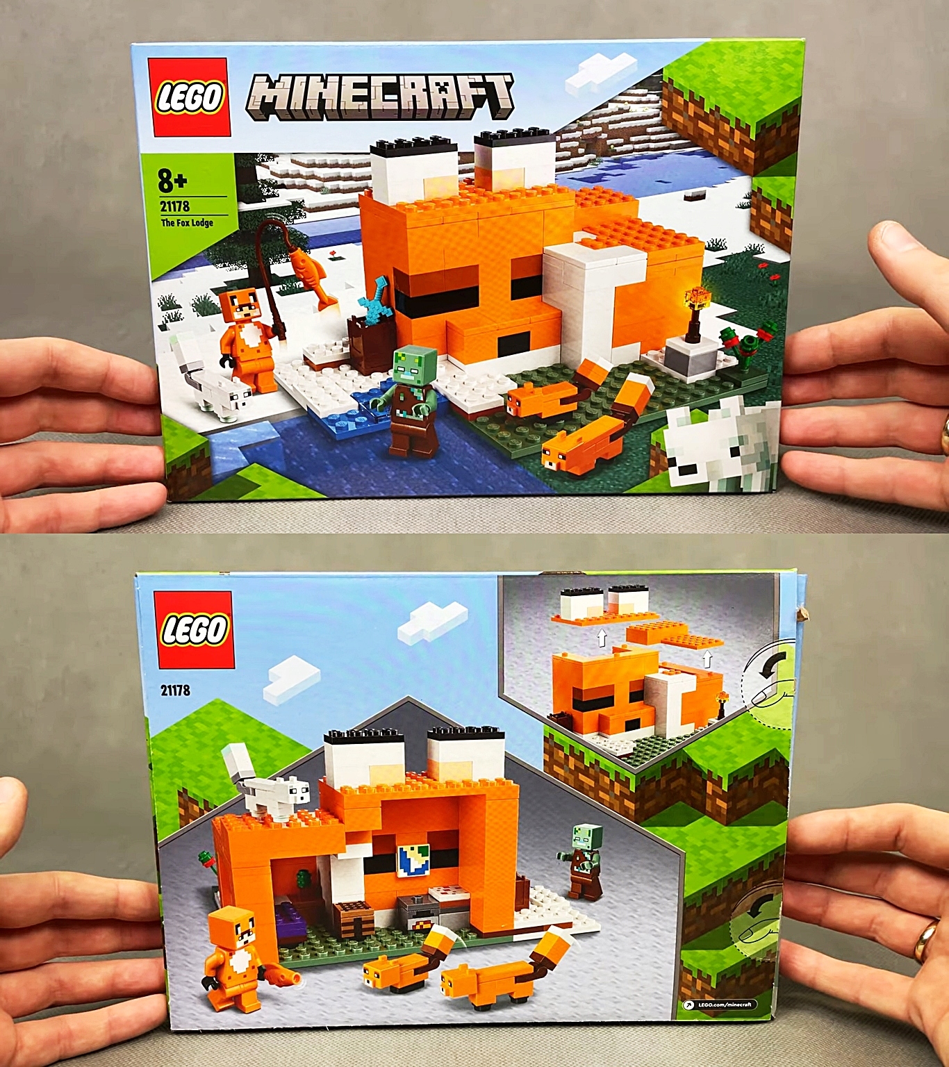➡️ Набор настолько крут для детей, ведь они получают две минифигурки, трёх животных и большой домик для лисиц, что, скорее всего, каждый маленький фанат Майнкрафта соберет свой карманные деньги на это.Набор Лего. :)