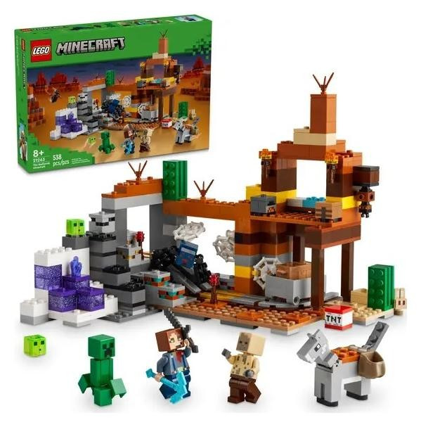 Практический набор для игроков Minecraft. В этой универсальной детской сборке представлены популярные персонажи мобов Minecraft. Она станет отличным подарком для мальчиков и девочек в возрасте от восьми лет и старше, которым нравятся игровые игрушки, приключения и строительство из блоков. Дети присоединятся к исследователю Бесплодных земель в заброшенной шахте в биоме Бесплодные земли, где они заложат динамит и активируют функцию взрыва, чтобы обнаружить кристаллы меди, золота, редита и аметиста. Затем они загрузят вагонетку и помчатся по путям, чтобы покинуть шахту. Оттуда они отправятся в сопровождении осла (в комплекте с большими седельными сумками) на базу исследователей с кроватью и ремесленным оборудованием. Вражеские мобы, с которыми придется сражаться по пути, включают пещерного паука Minecraft, крипера, сухостой и двух слизней. Для дополнительного цифрового развлечения интуитивно понятное приложение LEGO Builder позволяет строителям масштабировать и вращать модели в 3D и отслеживать их прогресс. Игрушка-шахта для детей. Набор Badlands Mine (21263) с фигурками Minecraft для мальчиков и девочек в возрасте от восьми лет создан по мотивам компьютерной игры. Действие происходит в заброшенной шахте