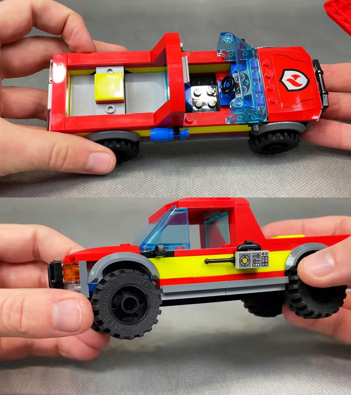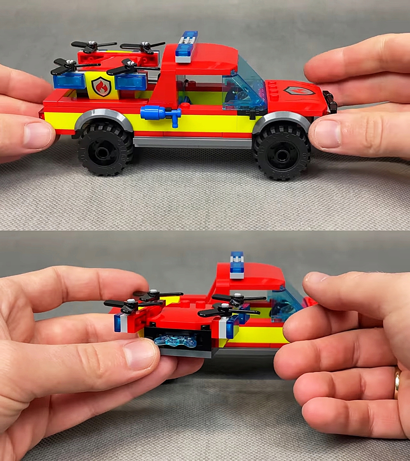 ➡️ В пожарной машине достаточно места для минифигурок, Также есть прикрепленный дрон, который взлетит в случае пожара для его тушения.