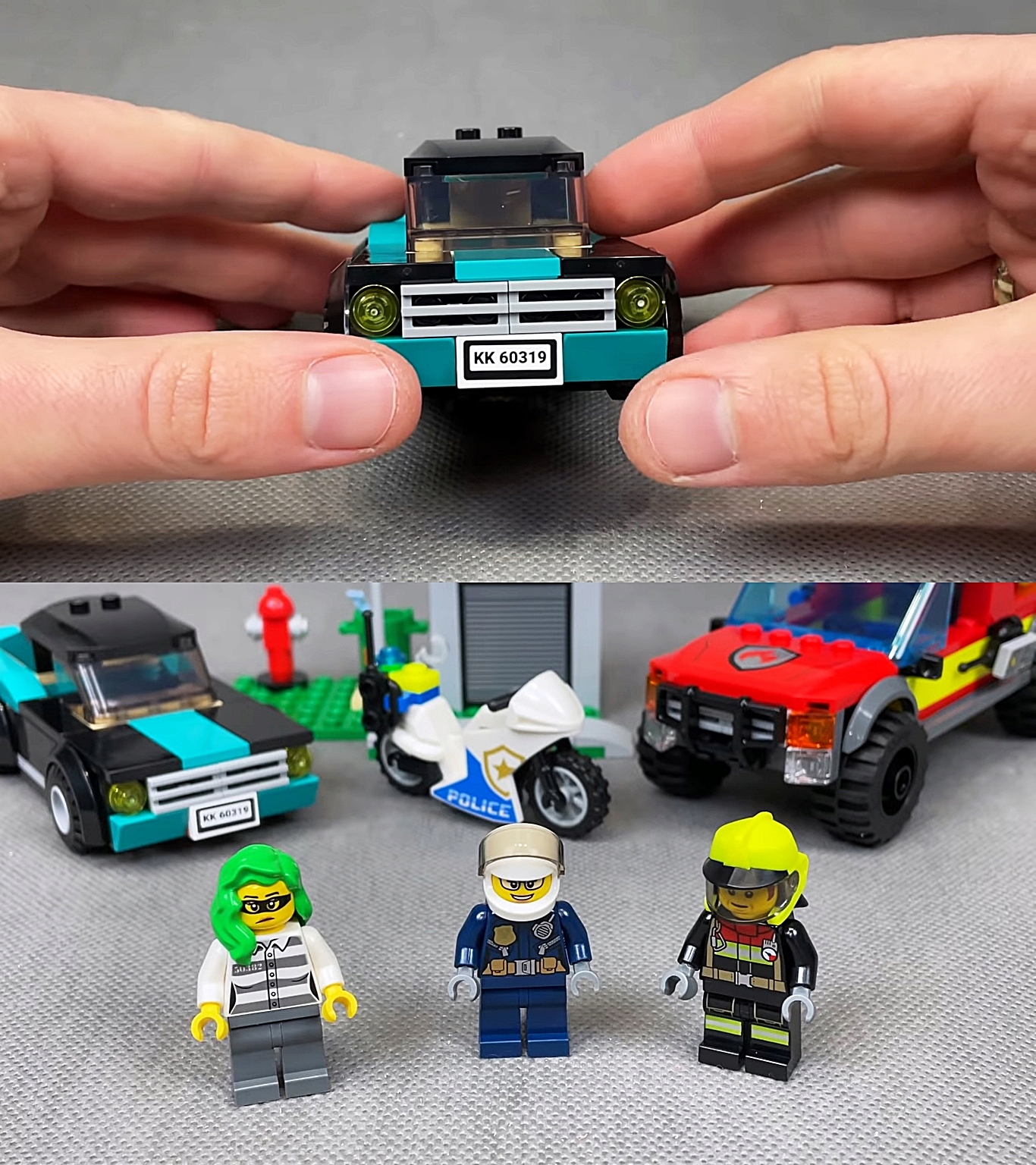 Набор полон деталей, которые побуждают к игре, и феноменальных транспортных средств, таких как пожарная машина с дроном, полицейский мотоцикл и воровская машина.