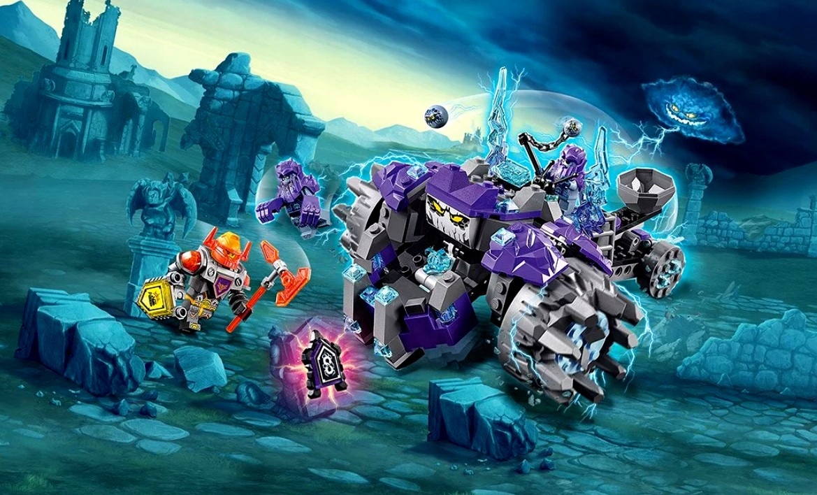 Этот набор LEGO® NEXO KNIGHTS™ вдохновит вас на создание бесконечных боевых сцен. Миссия Эксла — победить трех древних каменных монстров, терроризирующих Найтона. В комплект входит катящийся монстр с большой мордой, сокрушающими челюстями и работающей катапультой сзади. В комплект входят три минифигурки и два сканируемых щита.
