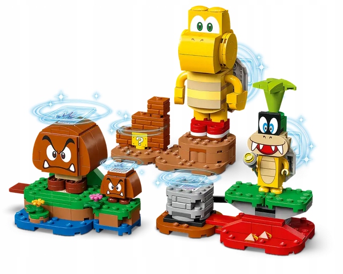 - Четыре фигурки LEGO® Super Mario™ — Игги, Большой Гумба, Большая Купа-Трупа и Гумба. Каждый из них имеет кирпичную основу, которую можно использовать в качестве украшения или интегрировать в уровни.