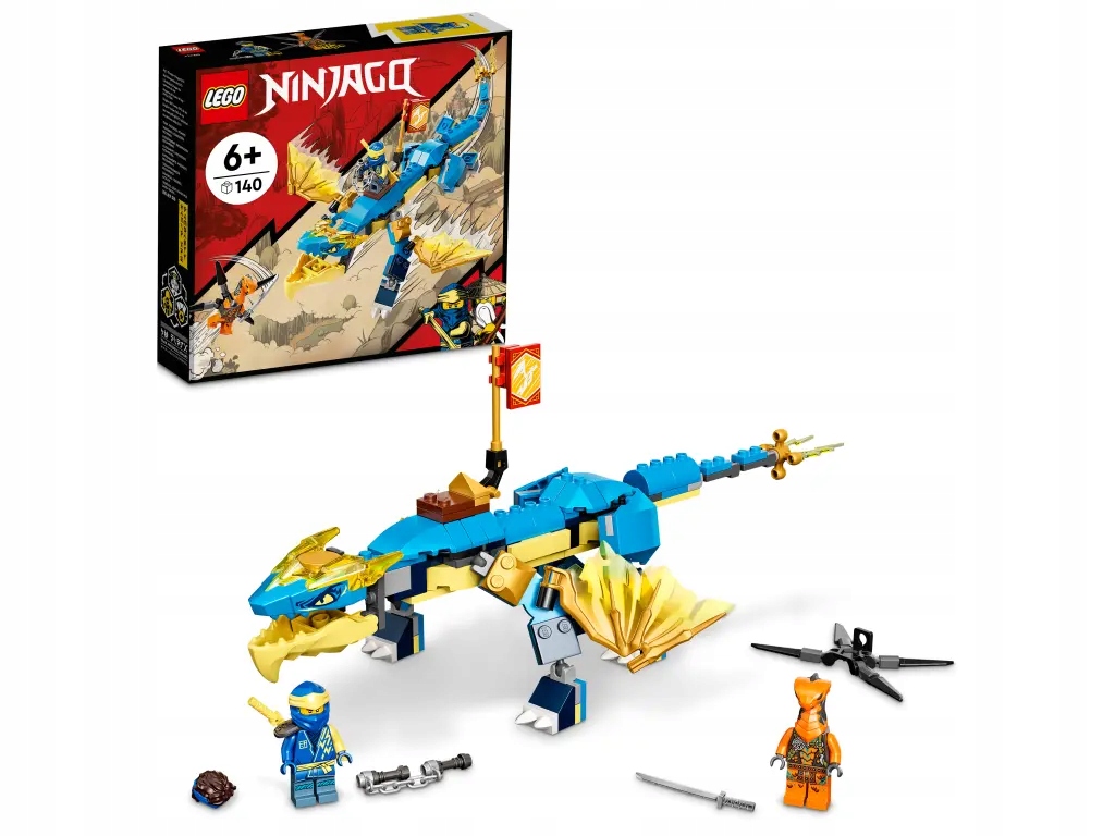 Юные воины-ниндзя в возрасте от шести лет и старше весело проведут время, создавая свои собственные забавные истории с набором Jay EVO Thunder Dragon (71760). У дракона подвижные передние и задние ноги, челюсть, голова и хвост, похожий на оружие. Его также можно улучшить, придав ему крылья большего размера. Динамичные сражения ниндзя. В этот набор входят две минифигурки: Джей с нунчаками и мечом и летающая Гадюка с реактивным ранцем и мечом. Персонажи позволяют разыгрывать потрясающие бои. Когда дети победят своих противников и завершат первую миссию, они получат в награду коллекционное знамя, новое для января 2022 года. Уникальные игрушки для творческих игр Игрушки NINJAGO способны перенести детей в захватывающий фэнтезийный мир, удерживая их подальше от экранов. Юные строители могут объединить усилия с отважными героями-ниндзя и построить множество наборов с мотоциклами, роботами и храмами.