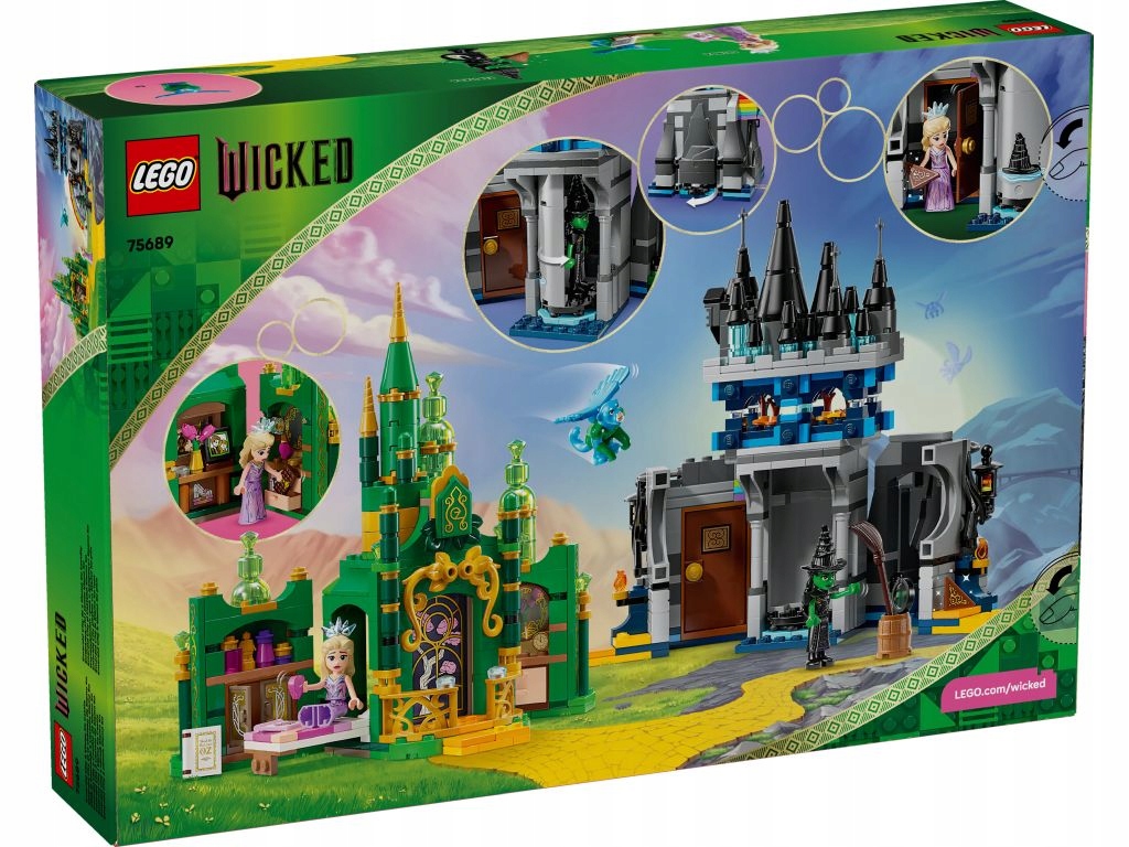 - Wicked Set for the Gift Set - Emerald City и Kiamo Ko Castle Play Kit содержит две модели, которые можно построить с Lego Wicked, Elphaby и Glindy Minilelets, статуэтка летающей обезьяны и радуги, чтобы построить