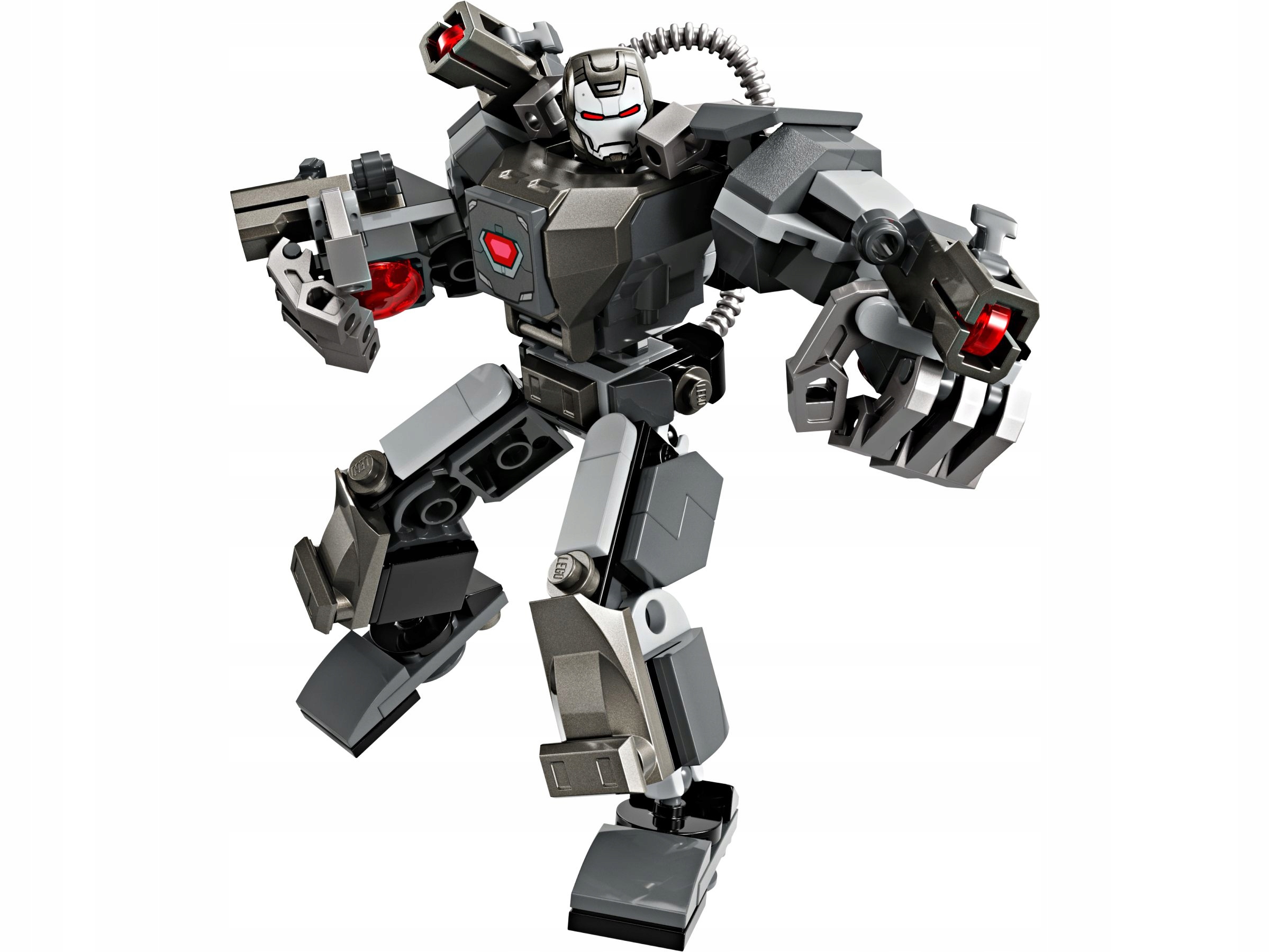 - Подвижный механизм — у этого робота есть подвижные руки, ноги и кисти, а также минифигурка LEGO® Marvel War Machine, стоящая за управлением. Создан для динамичных действий.