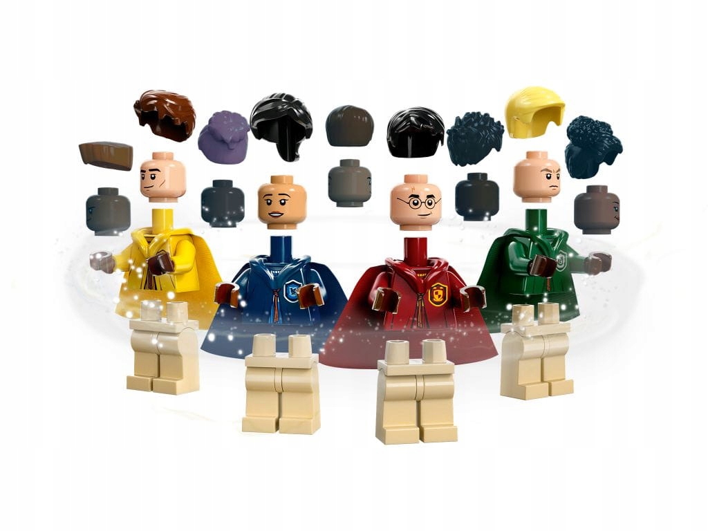 • 4 Настраиваемые минифигурки LEGO® - Harry Potter ™, Draco Malfoy ™, Cedric Diggory и Cho Chang, а также 10 дополнительных голов (6 различных оттенков кожи) и 10 дополнительных причесок, которые создадут уникальные игроки