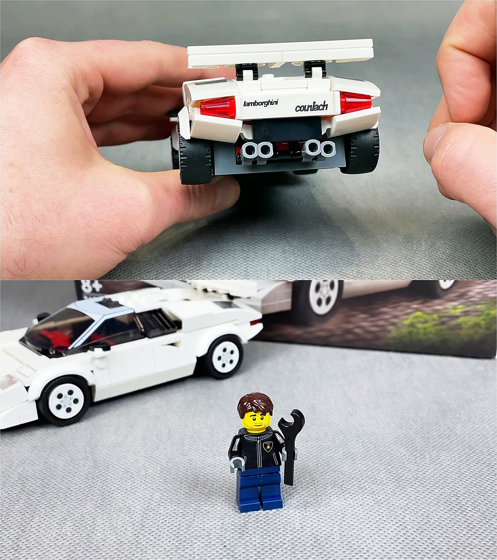 ➡️ У минифигурки два лица, на фотографиях изображено главное. На одежде у него логотип Lamborghini, а на голову можно надеть шлем. Большим преимуществом является персонализированный логотипом торс минифигурки, благодаря которому вы получаете более престижный набор Lego.