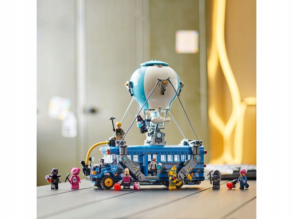Будьте готовы поехать в удивительный мир Lego® Fortnite! Создайте потрясающий боевой автобус, а затем отправляйтесь в поездку! Вдохновленный автомобилем из видеоигры, на автобусе есть вращающиеся колеса, съемная крыша и хороший воздушный шар для отопленного воздуха! Существует работа увлекательных деталей, таких как Siok Juice, Spock, Milohes и Kleposok, а также содержит девять минифигур в ваших любимых костюмах!