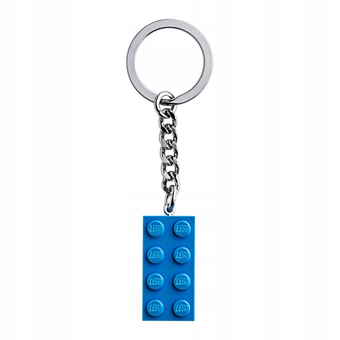 - Брелок состоит из синего переливающегося кубика LEGO® 2x4, подвешенного на прочной металлической цепочке с кольцом. .